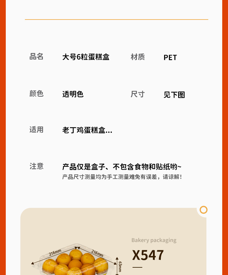 盒马同款老丁鸡蛋糕包装盒九粒现烤土鸡蛋糕蛋仔一次性透明打包盒 投诉