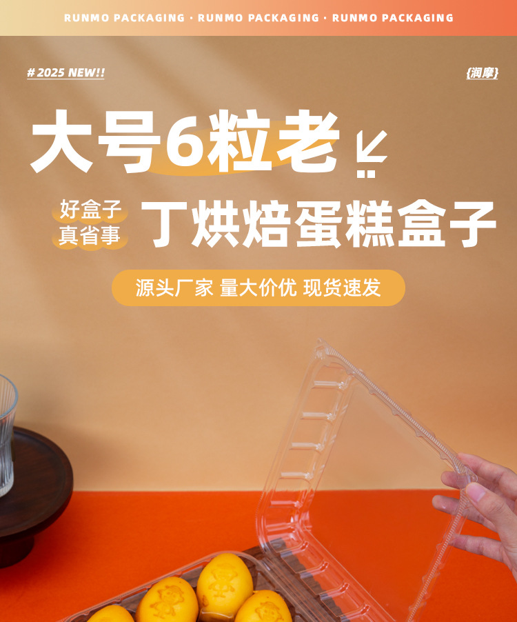 品牌: 润摩 包装层次: 初级包装 是否跨境出口专供货源: 否 加工定制: 否 误差: ±5mm 货号: X547 包装型式: 袋装 是否可降解: 是 是否进口: 否 全国工业生产许可证编号: 咨询客服 适用对象: 甜品 蛋糕 风格: 简约 产地: 浙江 功能性特点: 透明加厚 工艺: 吸塑 日生产量: 30万个 销售方式: 店铺下单 规格: 9粒老丁鸡蛋糕盒-整箱300套 颜色: 透明 材质: 整箱拍发货