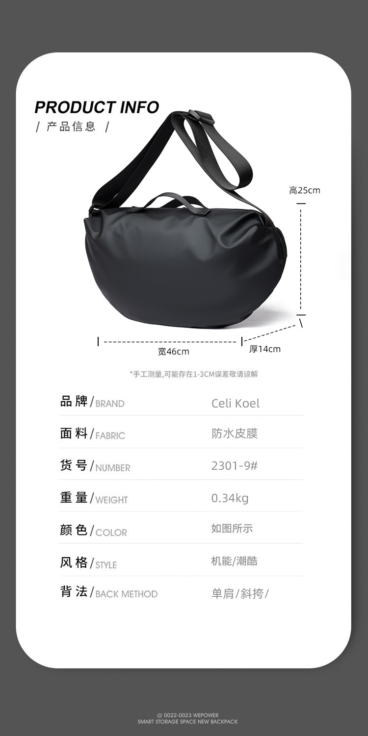 高质感跨境斜挎包时尚包包休闲纯色单肩包大容量防泼水轻便男包 投诉