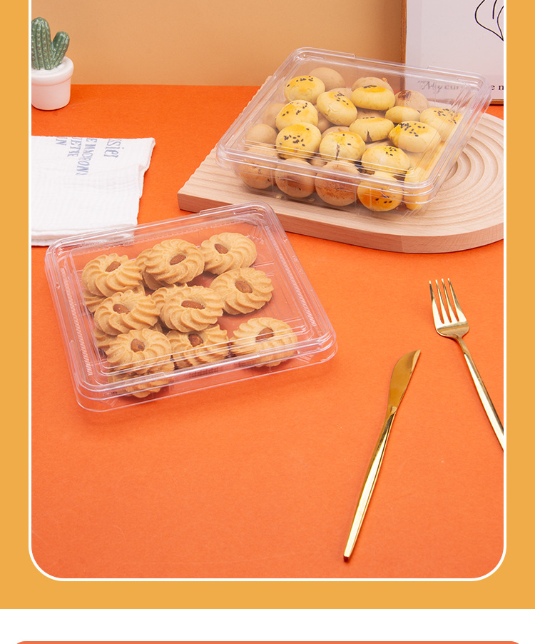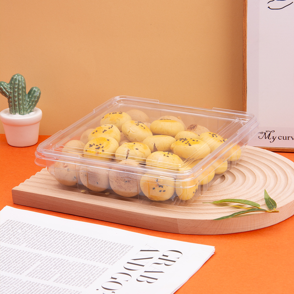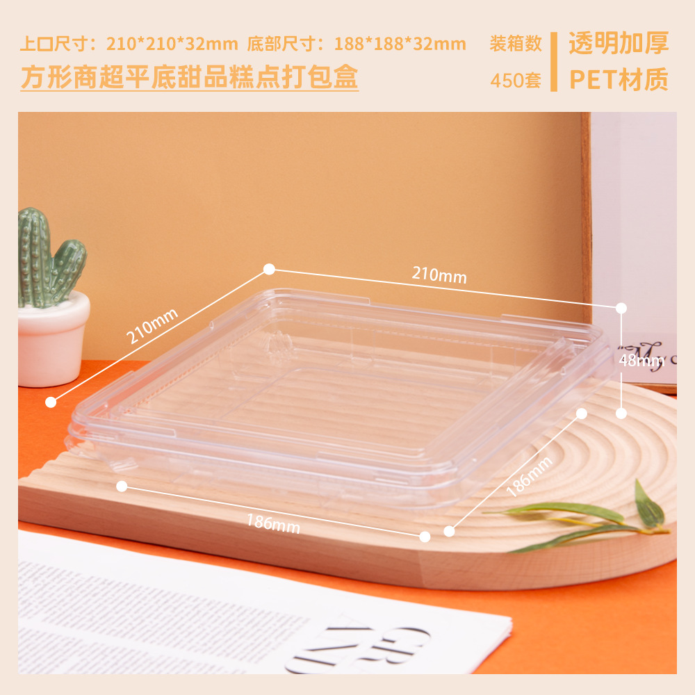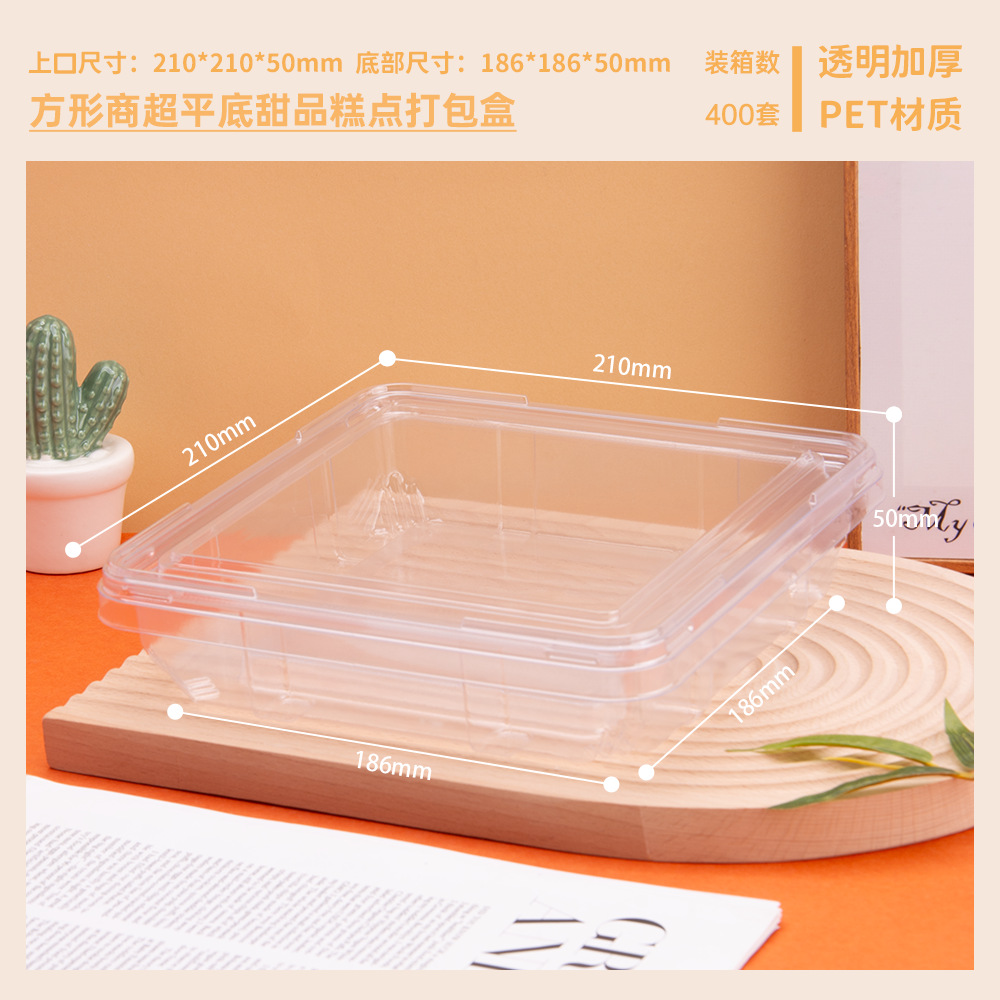 方型西点盒一次性透明塑料密封平底盒甜品糕点散装食品超市果蔬盒