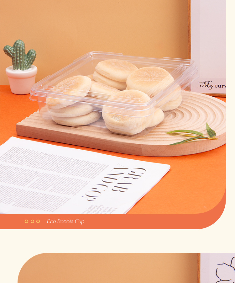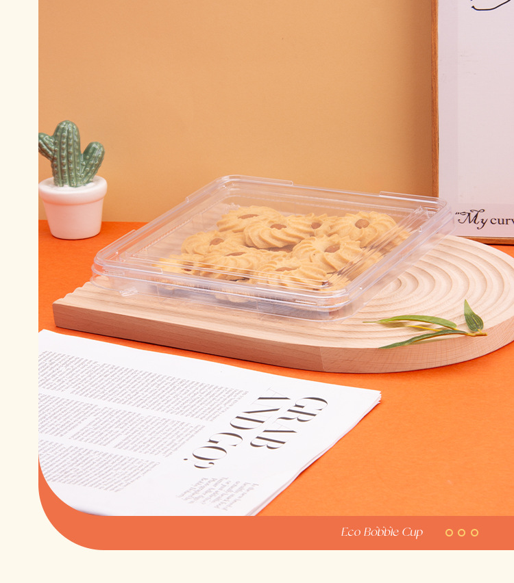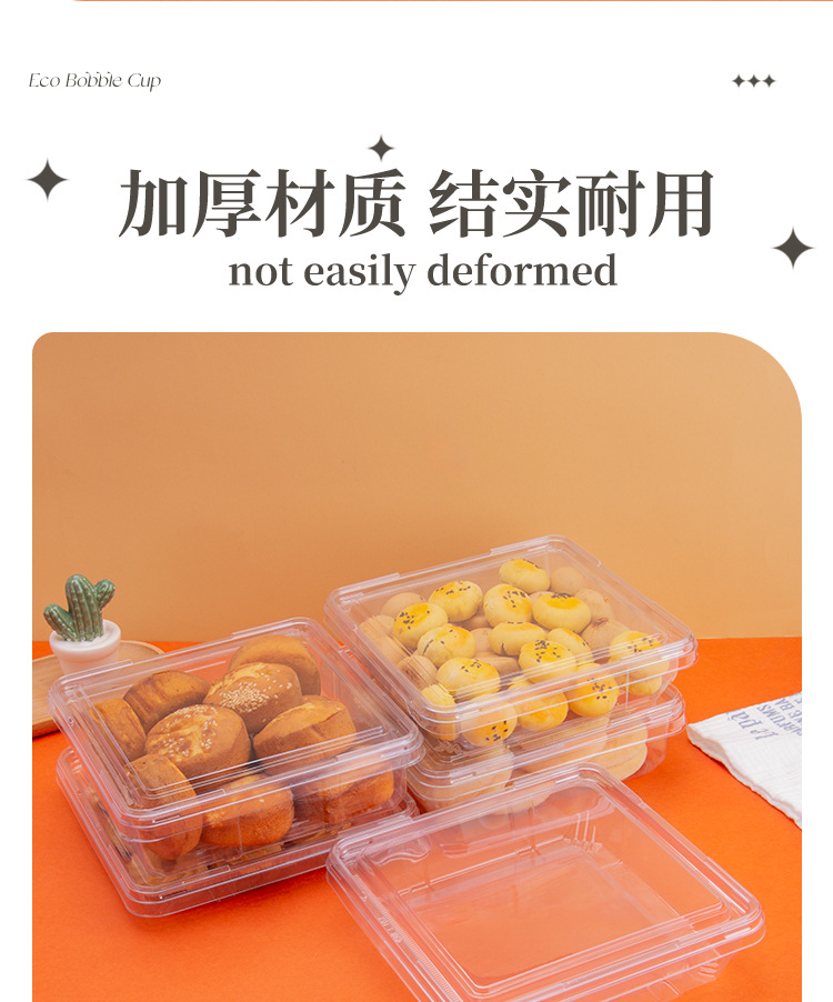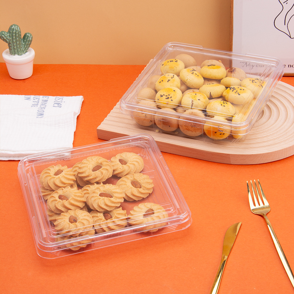 方型西点盒一次性透明塑料密封平底盒甜品糕点散装食品超市果蔬盒