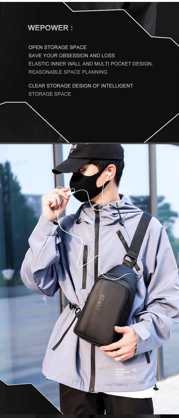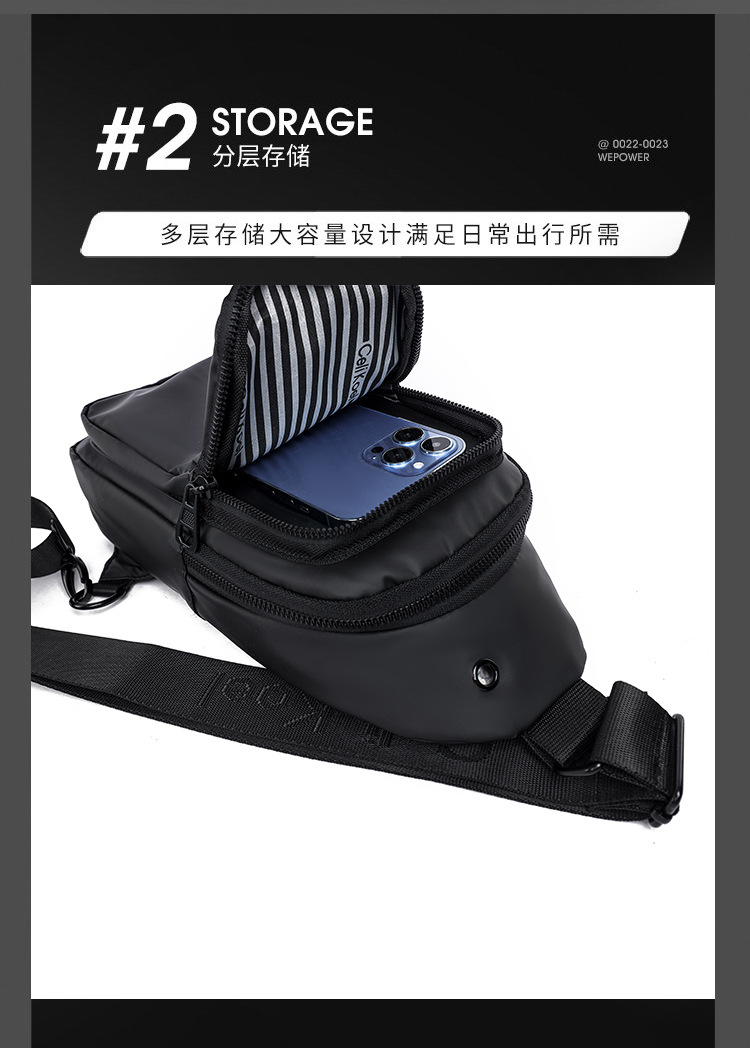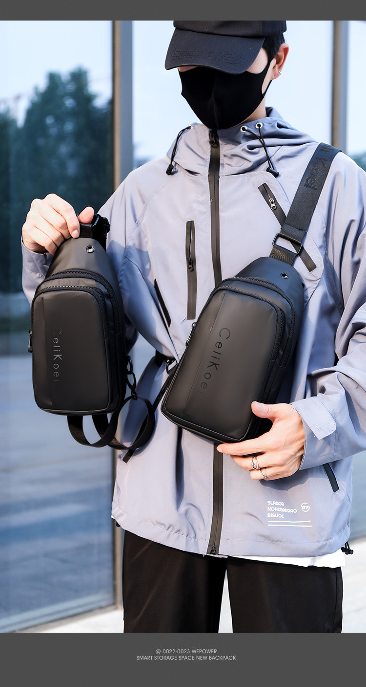 潮牌高颜值男士胸包防水多功能大容量单肩包斜挎包运动小背包潮包