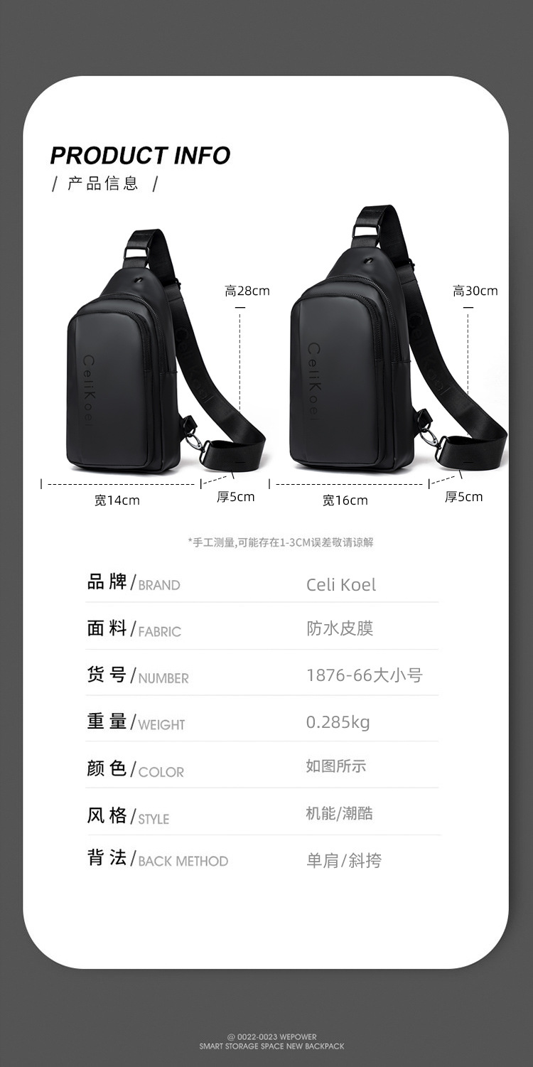 潮牌高颜值男士胸包防水多功能大容量单肩包斜挎包运动小背包潮包 投诉
