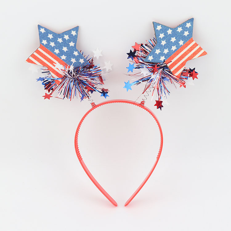 亚马逊跨境供应美国国旗图案头箍美国节日国庆五角星帽子桃心发箍