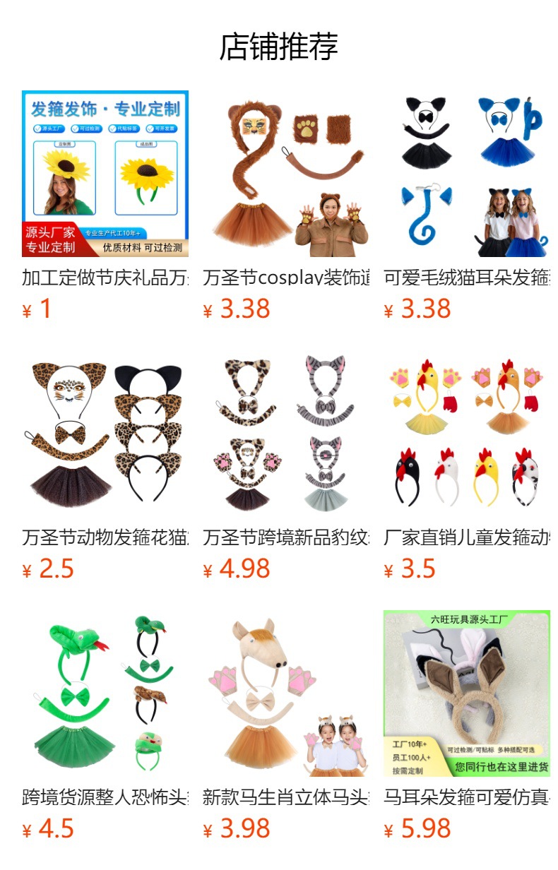 20年工厂,支持发箍、发夹、发绳、纱裙等节日派对、儿童服饰、cosplay布艺产品,支持来图来样定制,免费打样,售后有保障,部分产品有现货,欢迎联系~
