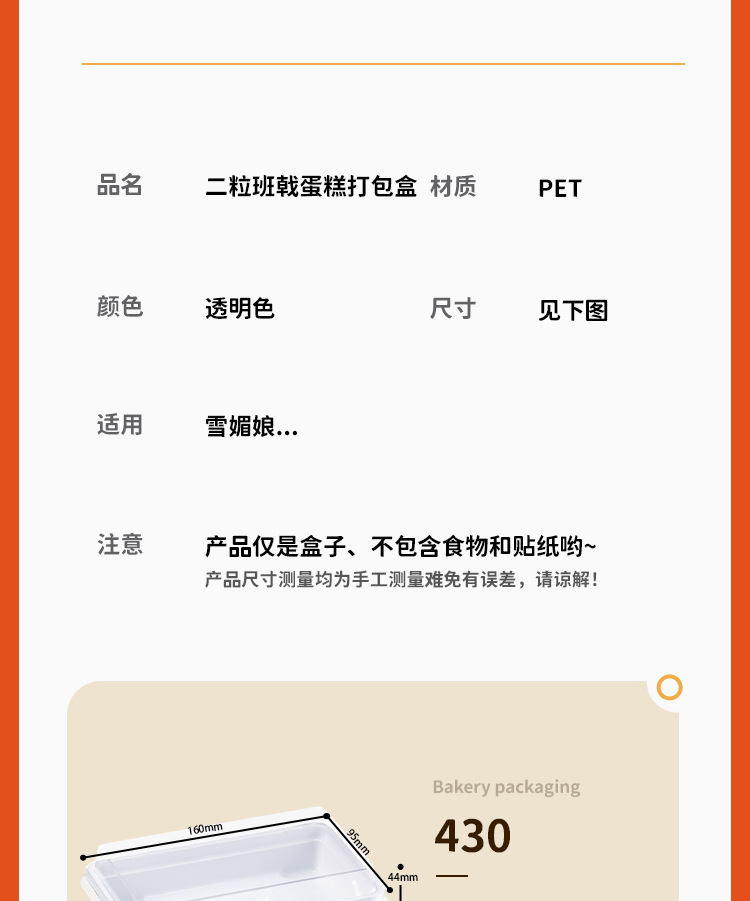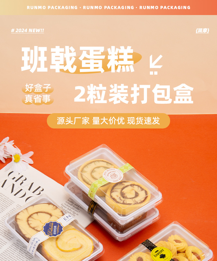 2粒班戟包装盒 芒果榴莲班戟盒雪媚娘打包盒长方形透明西点甜品盒 投诉