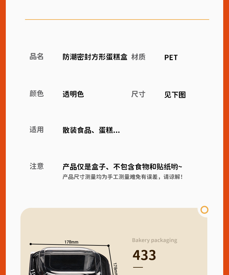西点蛋糕透明包装盒方形加厚芝麻条饼干曲奇桃酥一次性塑料打包盒 投诉