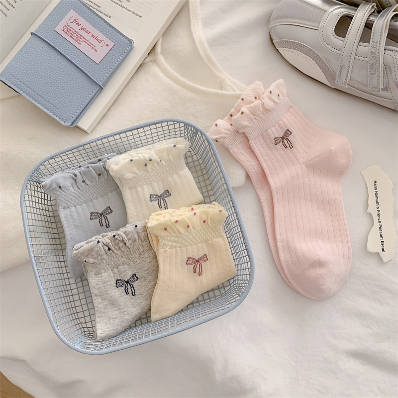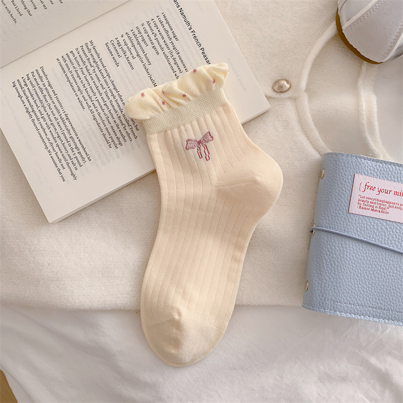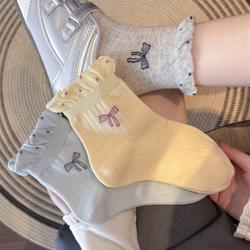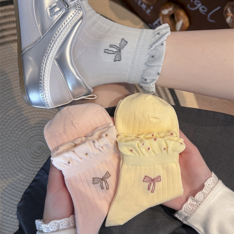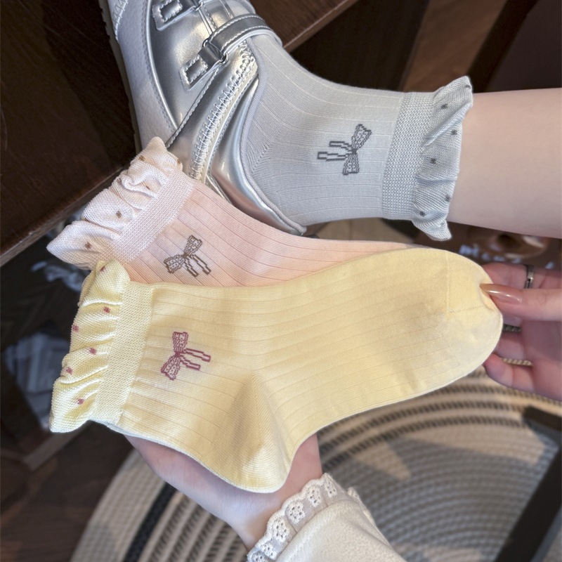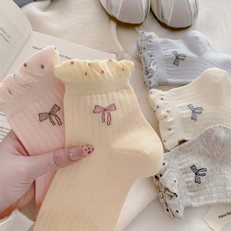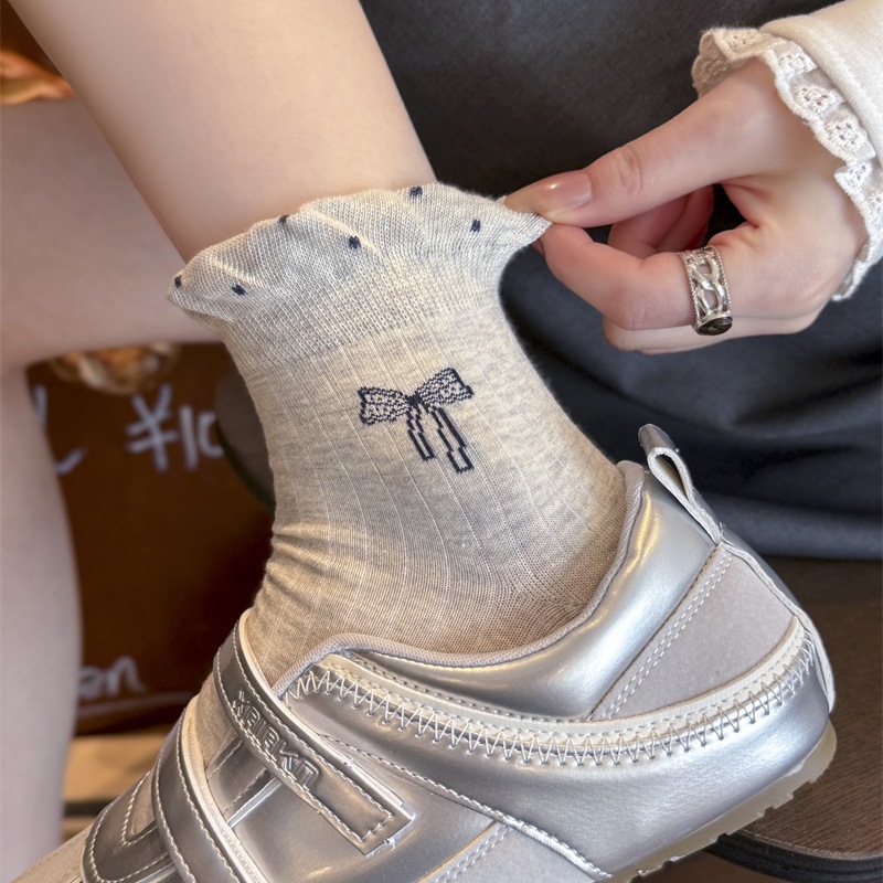 蝴蝶结无骨袜子女新款波点泡泡口短袜春秋夏季薄款防滑棉质短筒袜 English | 投诉