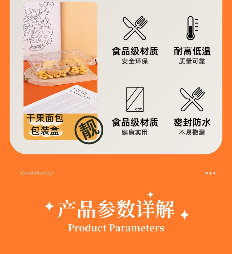 一次性西点果蔬干果烘焙蛋糕盒面包裂巴蛋糕包装盒手撕面包整理箱 投诉