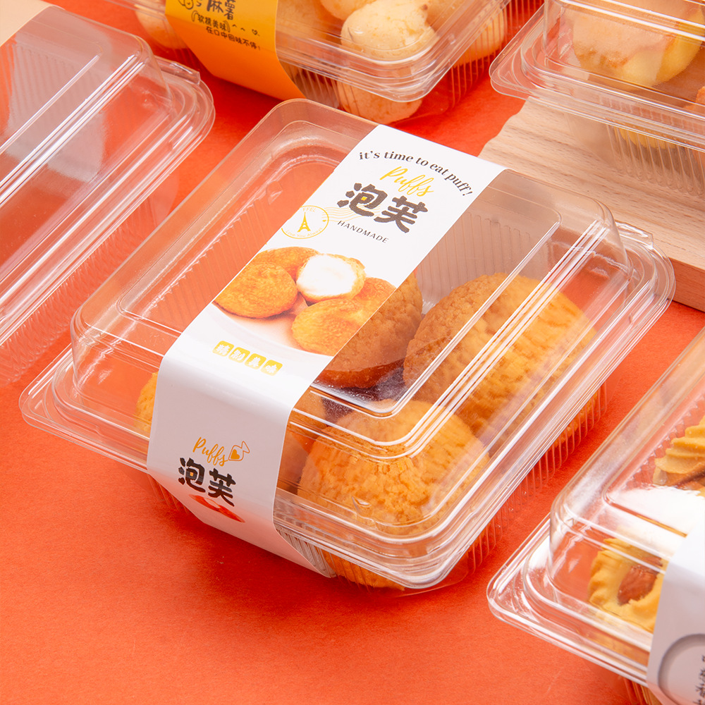 流心泡芙一体盒子麻薯小蛋糕西点透明塑料老奶油牛奶小蛋糕包装盒