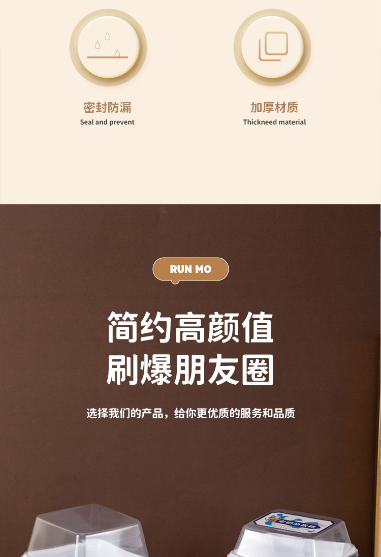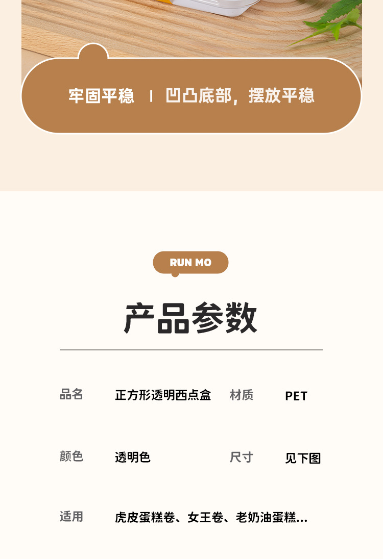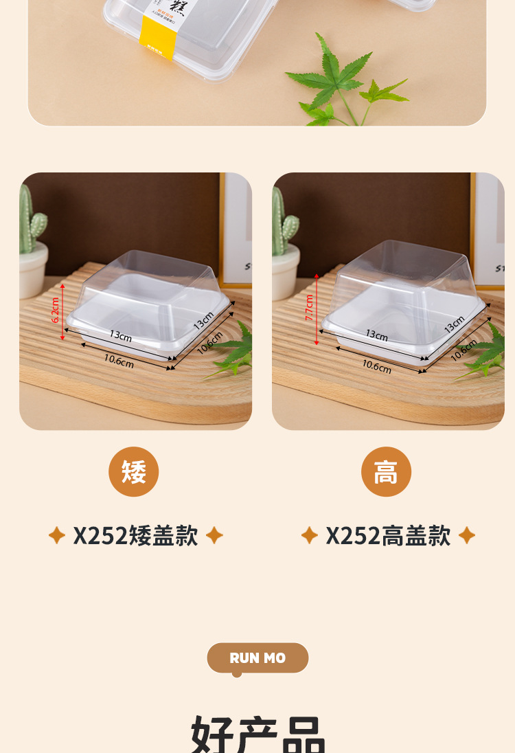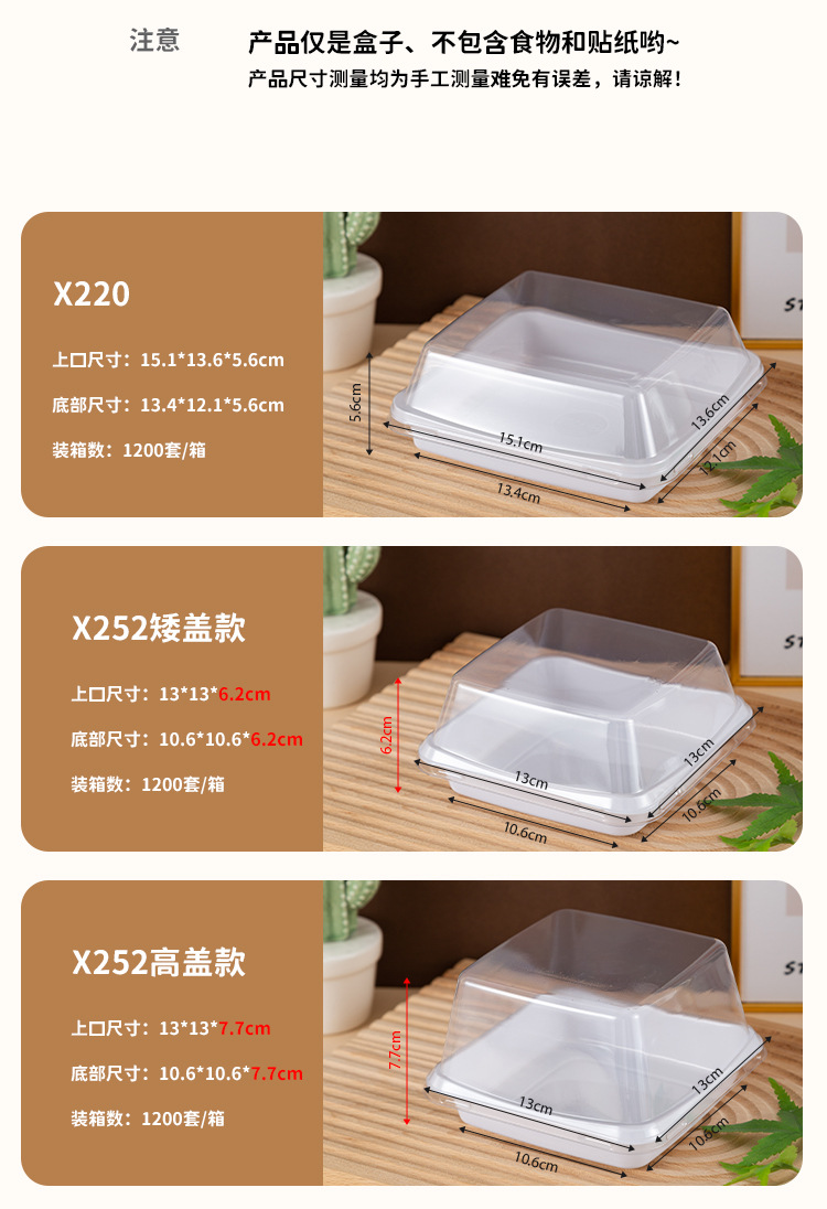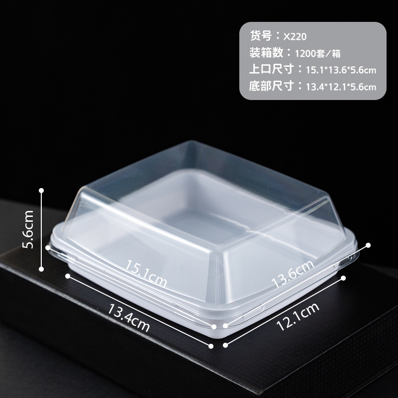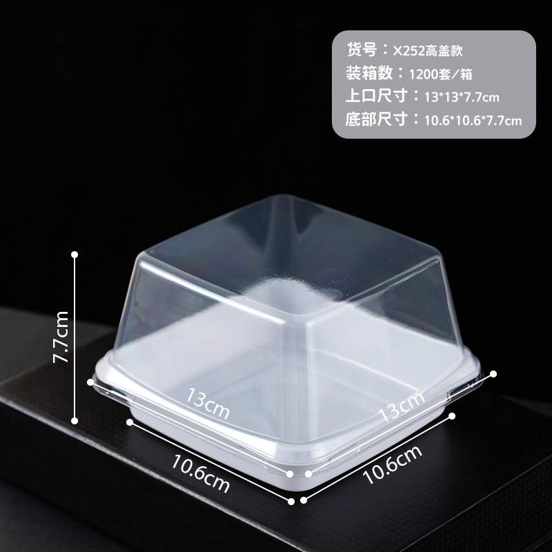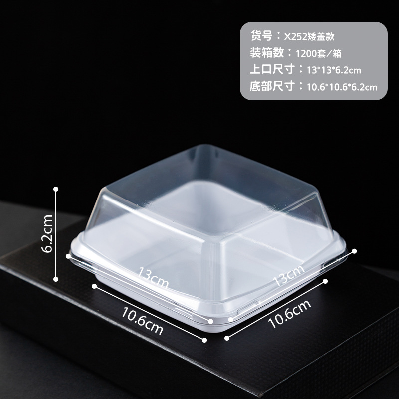 品牌: 润摩 包装层次: 初级包装 是否跨境出口专供货源: 否 加工定制: 否 误差: ±5mm 货号: X220 X252 包装型式: 袋装 是否可降解: 是 是否进口: 否 全国工业生产许可证编号: 咨询客服 适用对象: 甜品 蛋糕 风格: 简约 产地: 浙江 功能性特点: 透明加厚 工艺: 吸塑 销售方式: 店铺下单 规格: 正方形矮盖款 1套,长方形 1套,正方形 日生产量: 多 颜色: PET加厚防雾