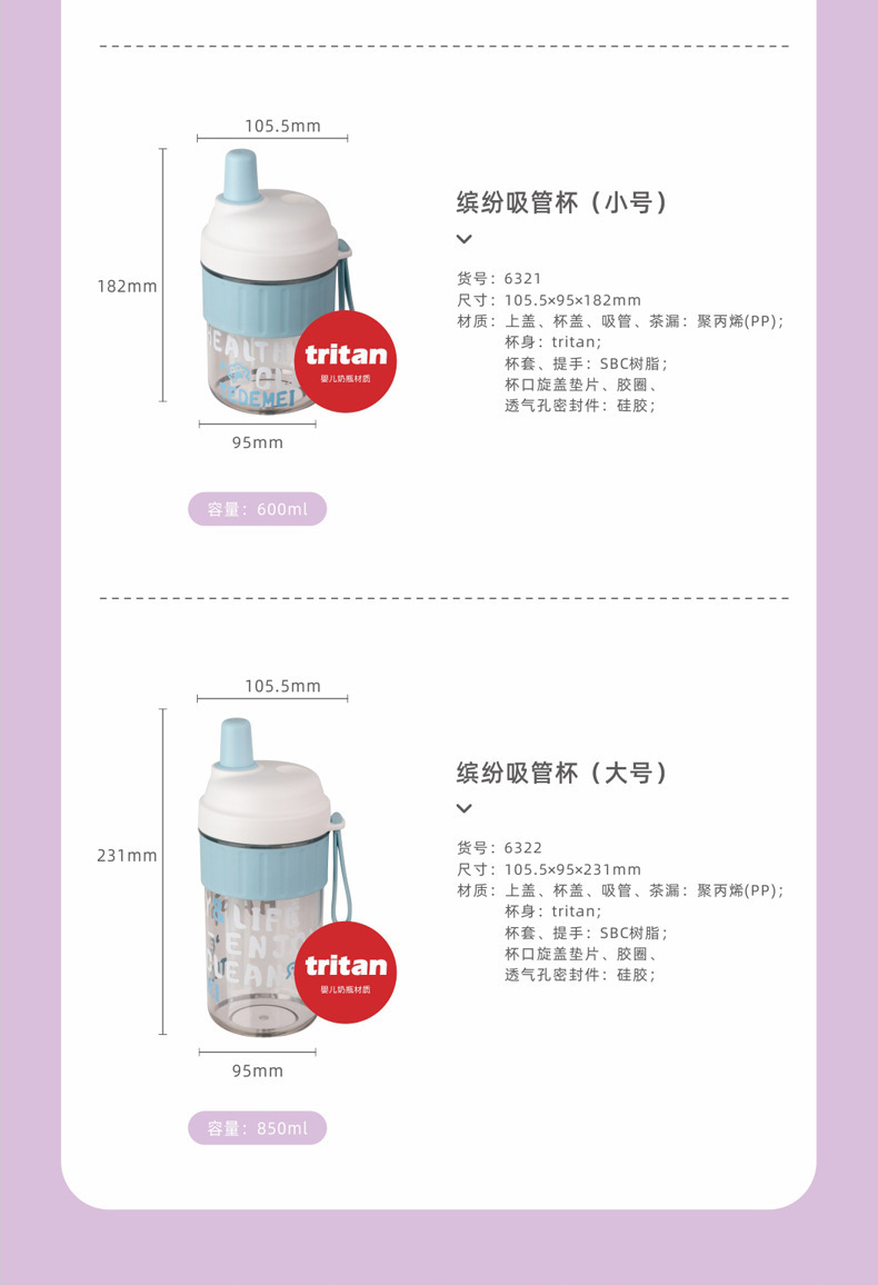 产品材质:ABS+PP+Tritan+SBC树脂+硅胶