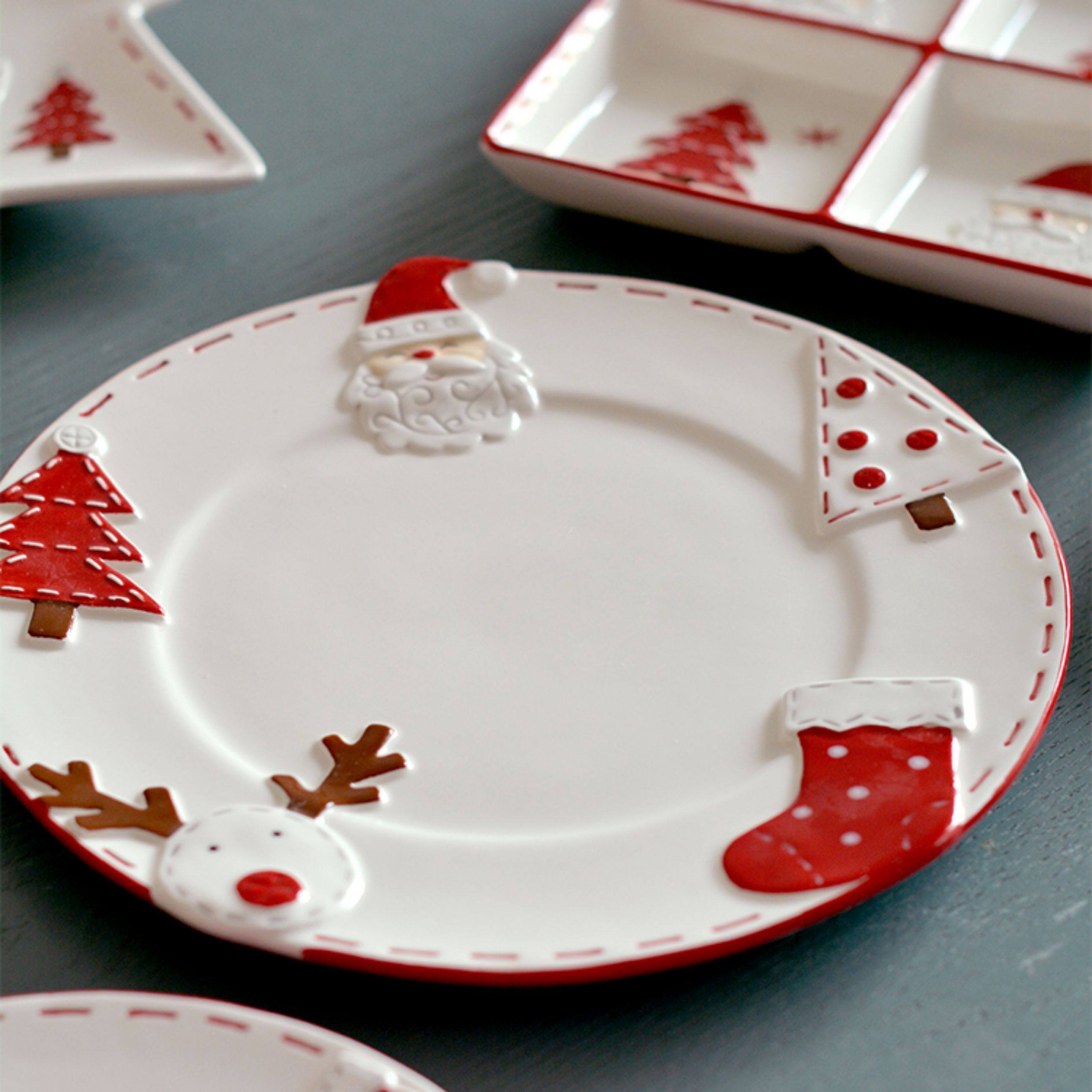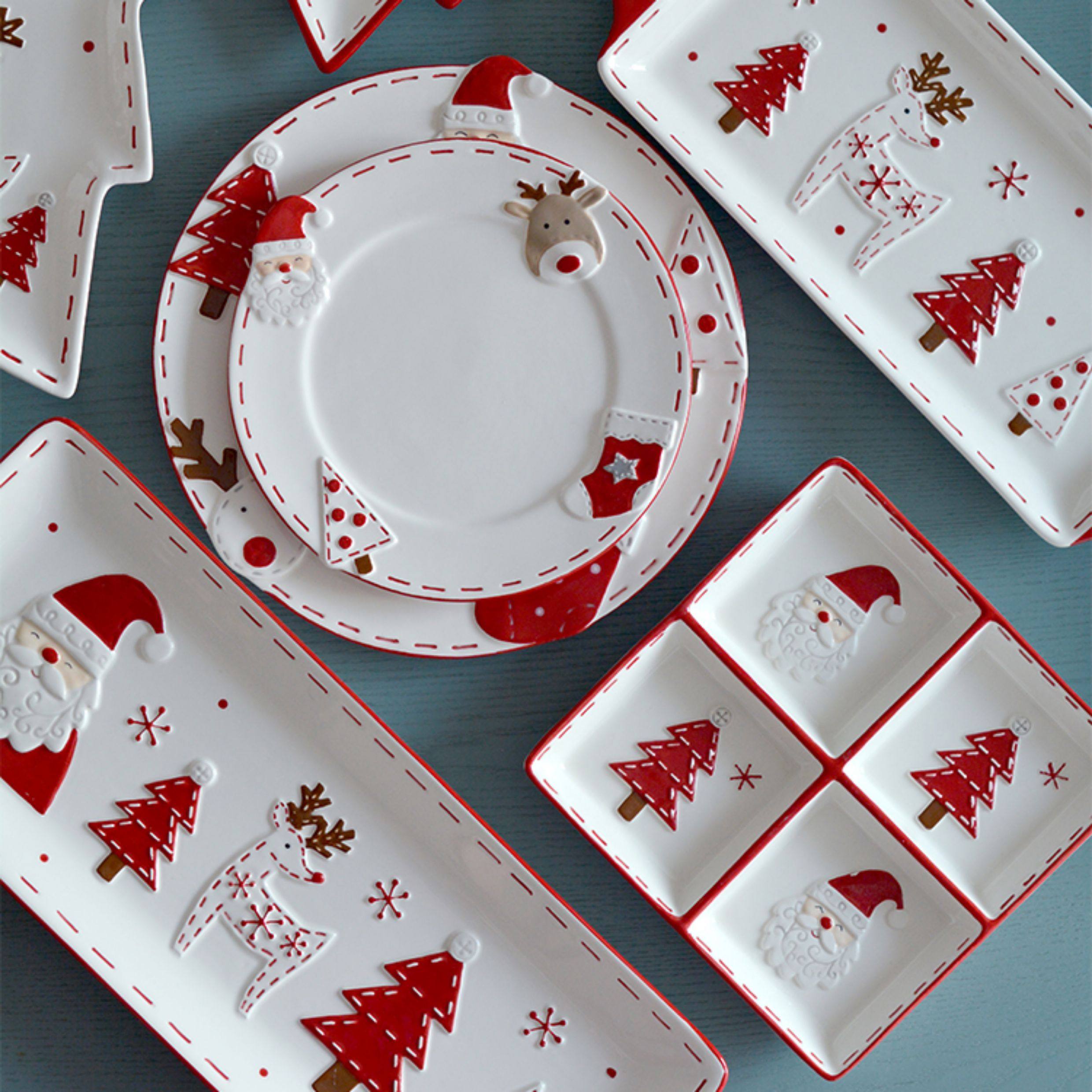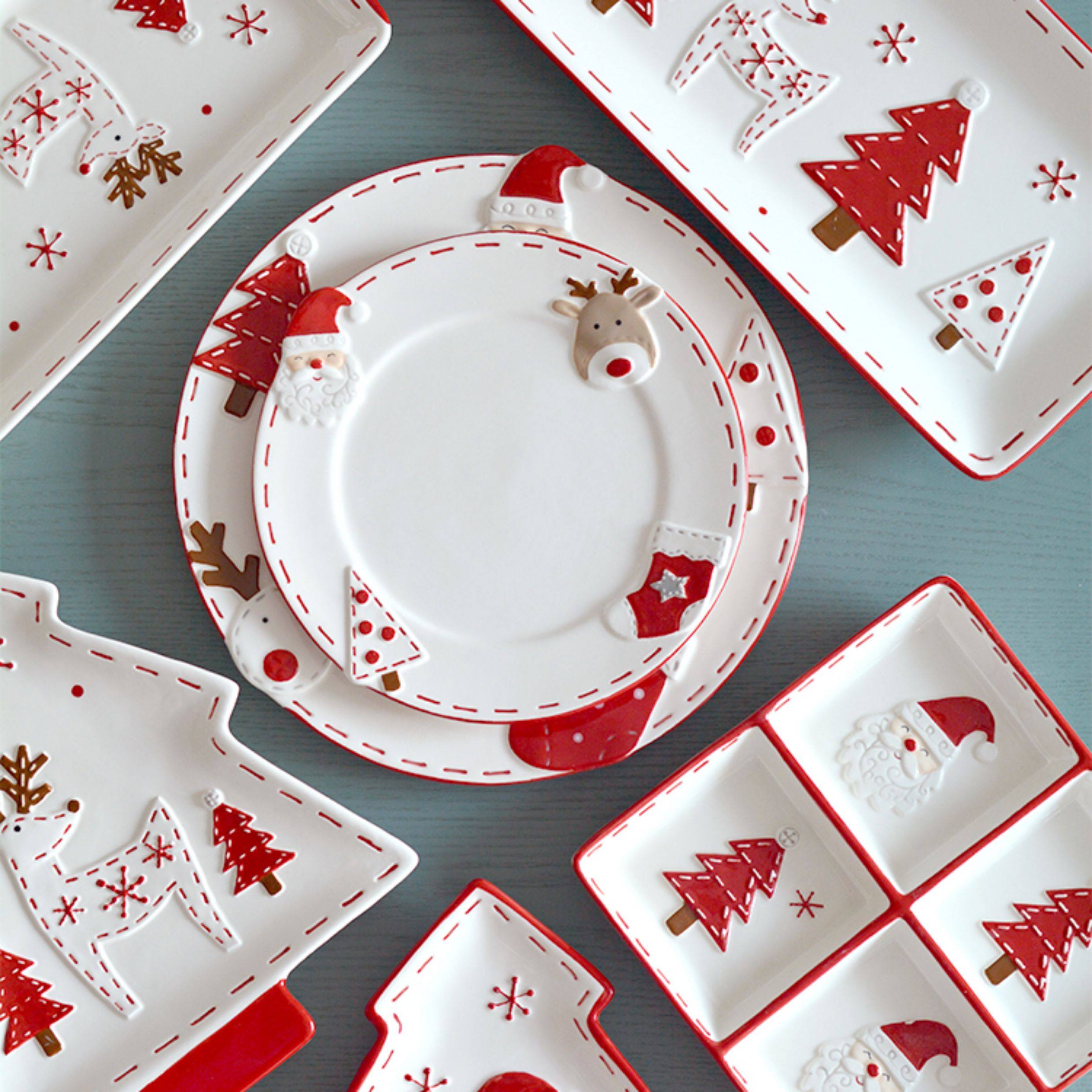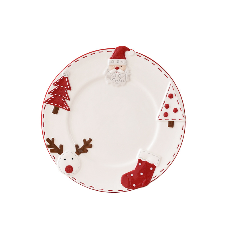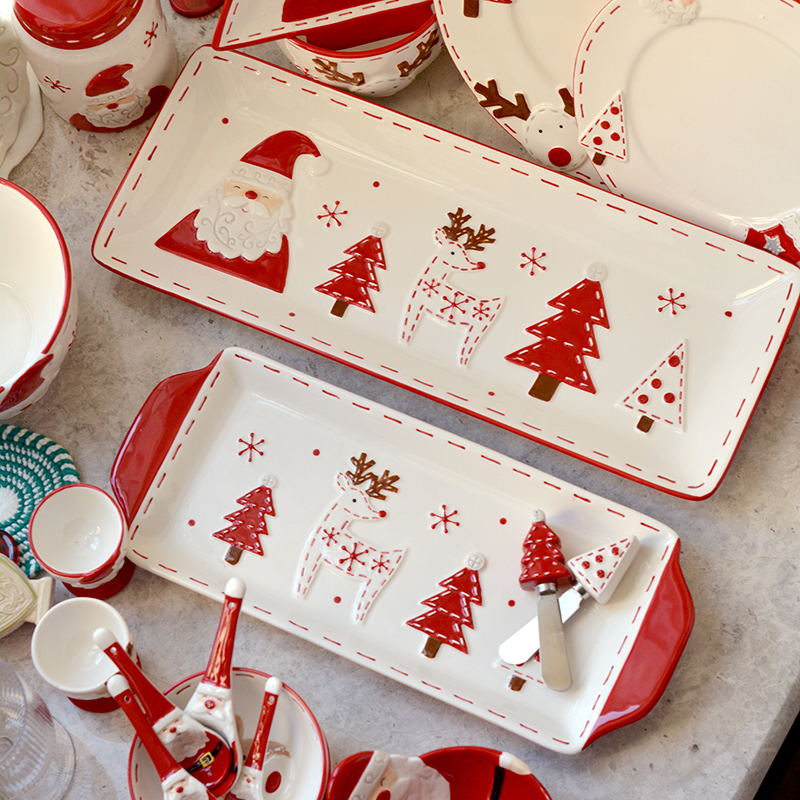 圣诞手绘陶瓷餐具套装可爱牛排盘浮雕釉彩平盘密封罐茶具陶瓷碗