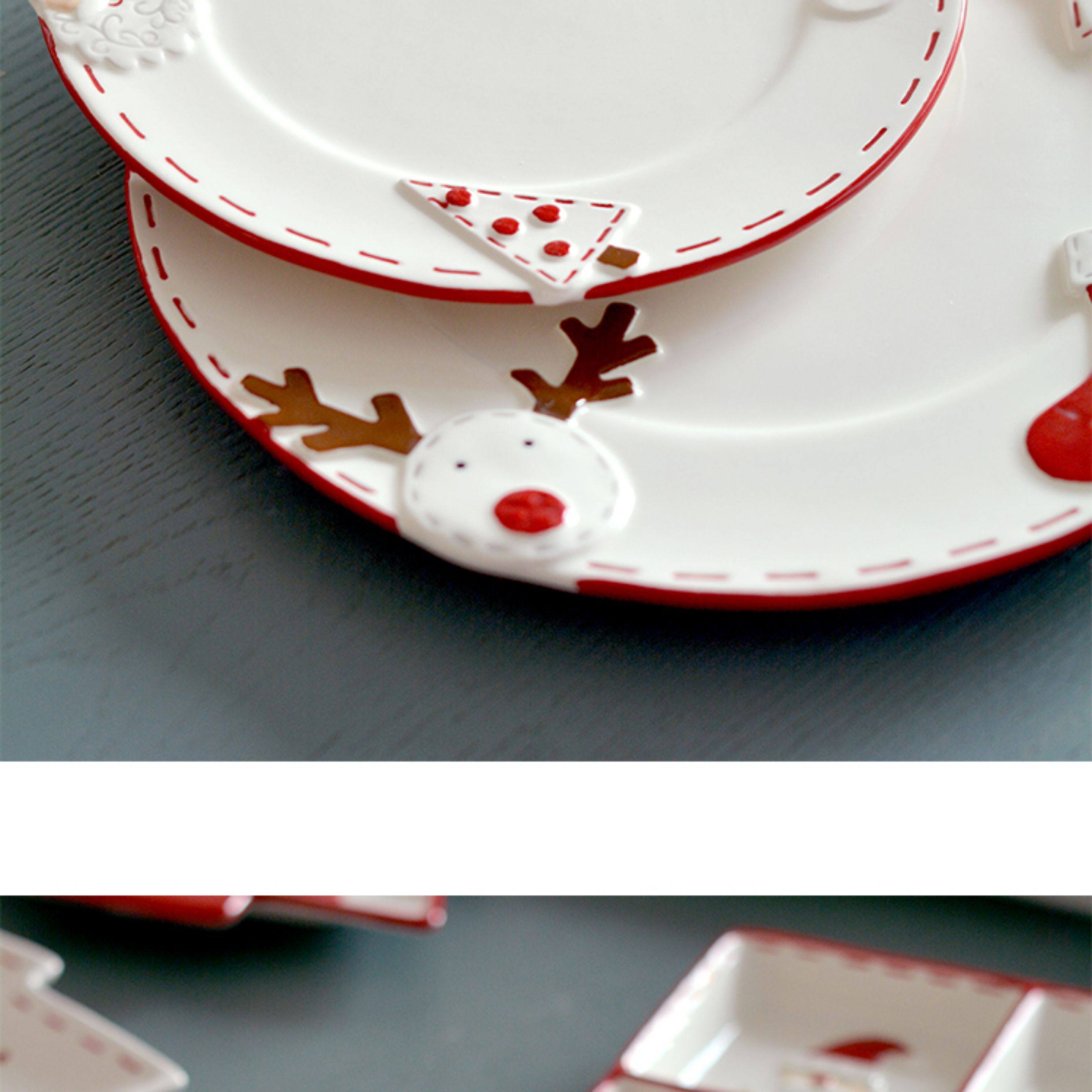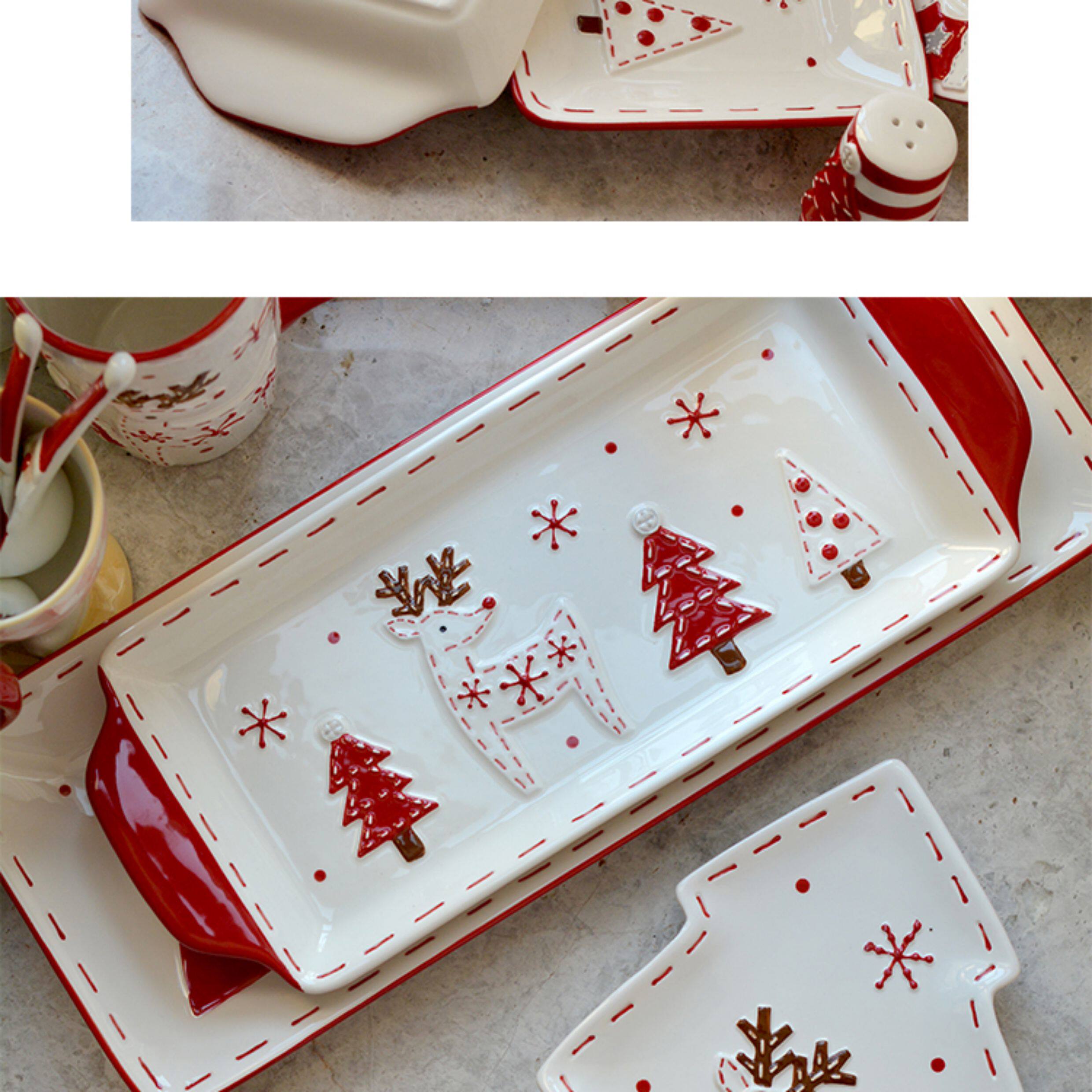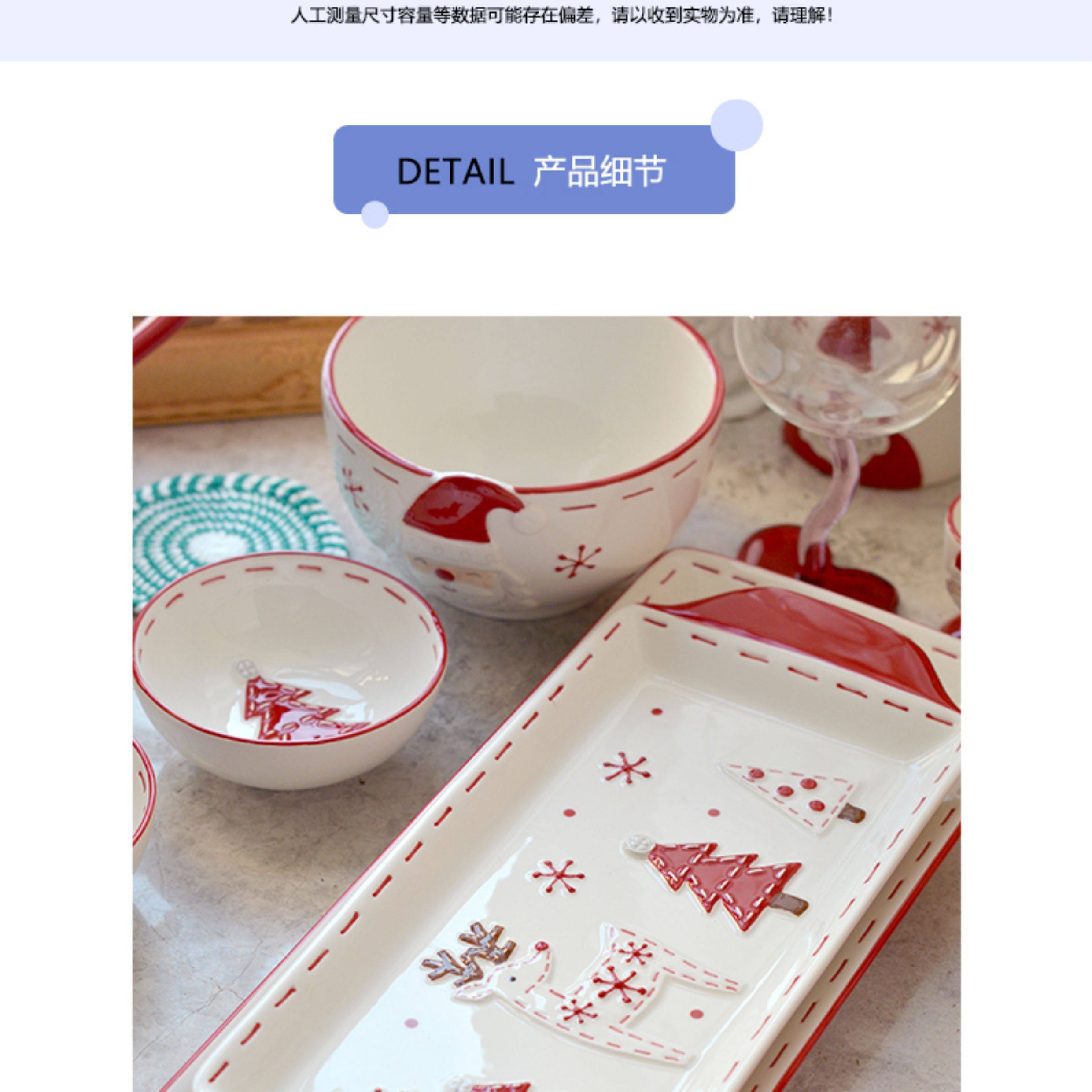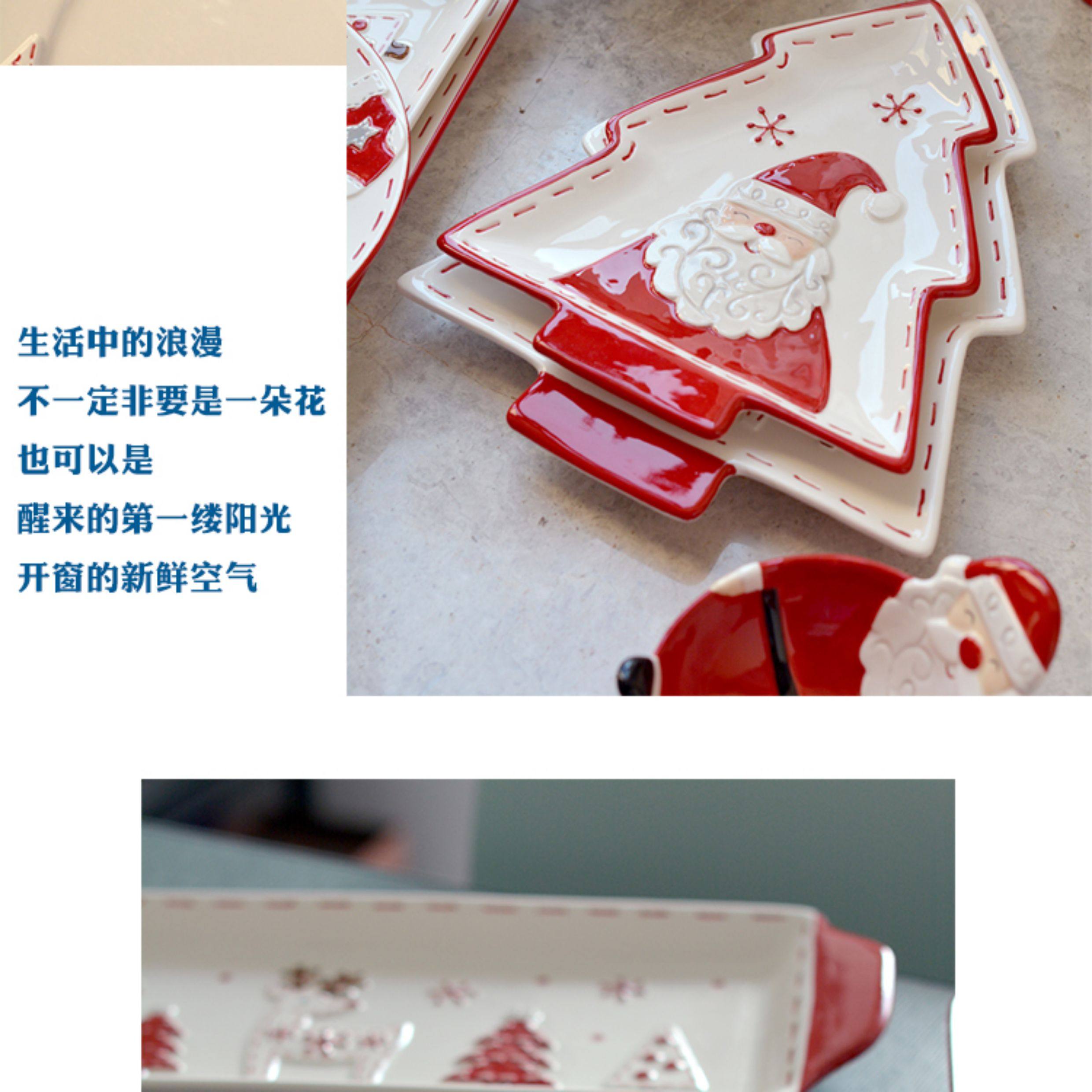 圣诞手绘陶瓷餐具套装可爱牛排盘浮雕釉彩平盘密封罐茶具陶瓷碗 投诉