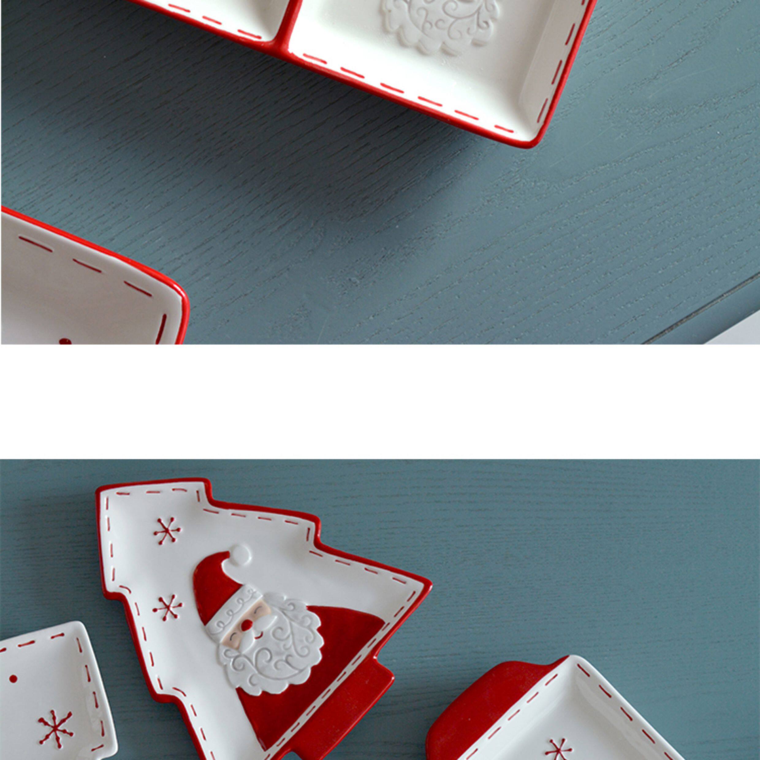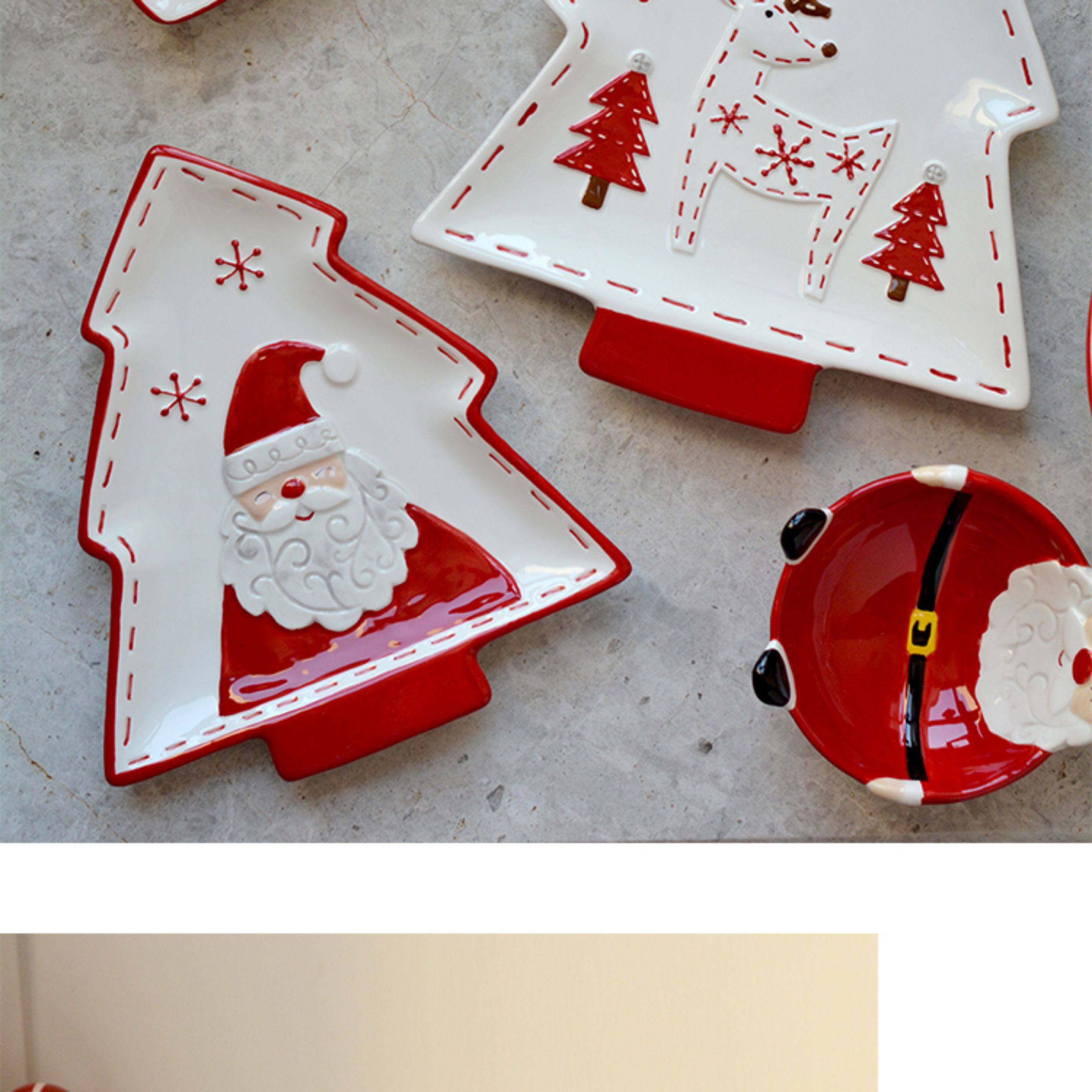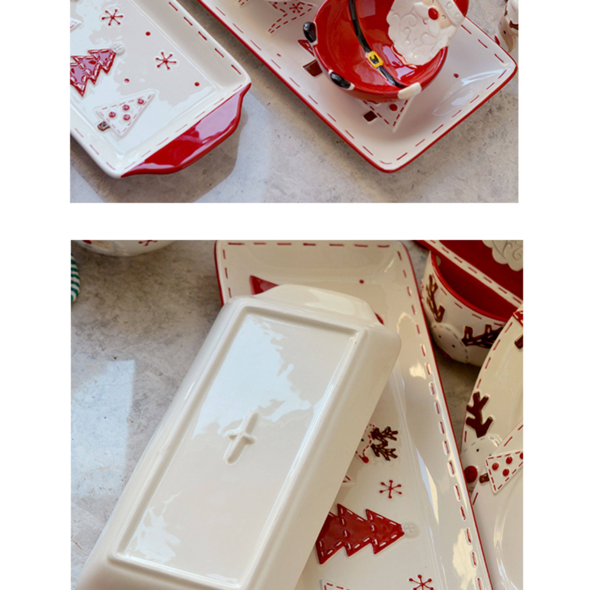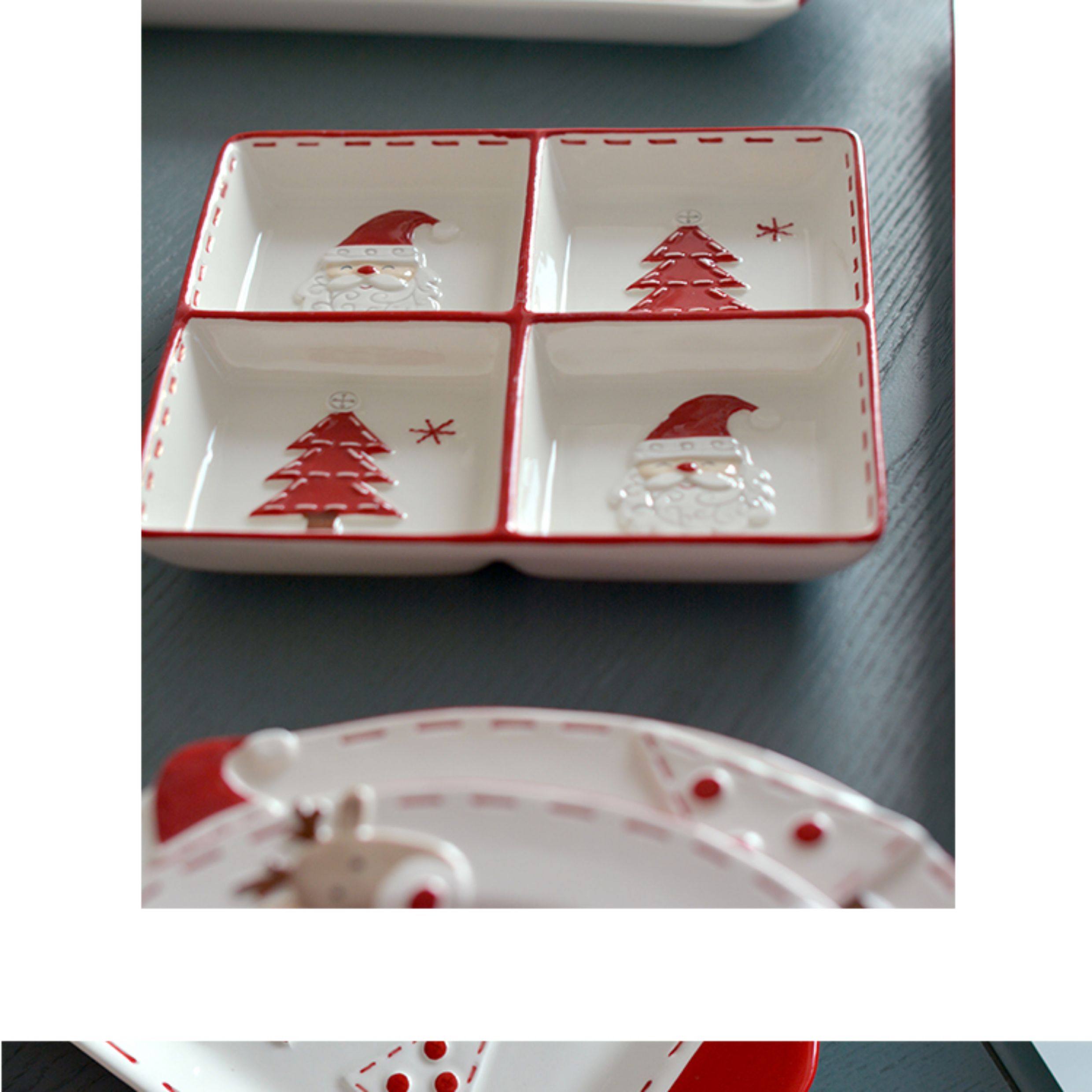 圣诞手绘陶瓷餐具套装可爱牛排盘浮雕釉彩平盘密封罐茶具陶瓷碗 投诉