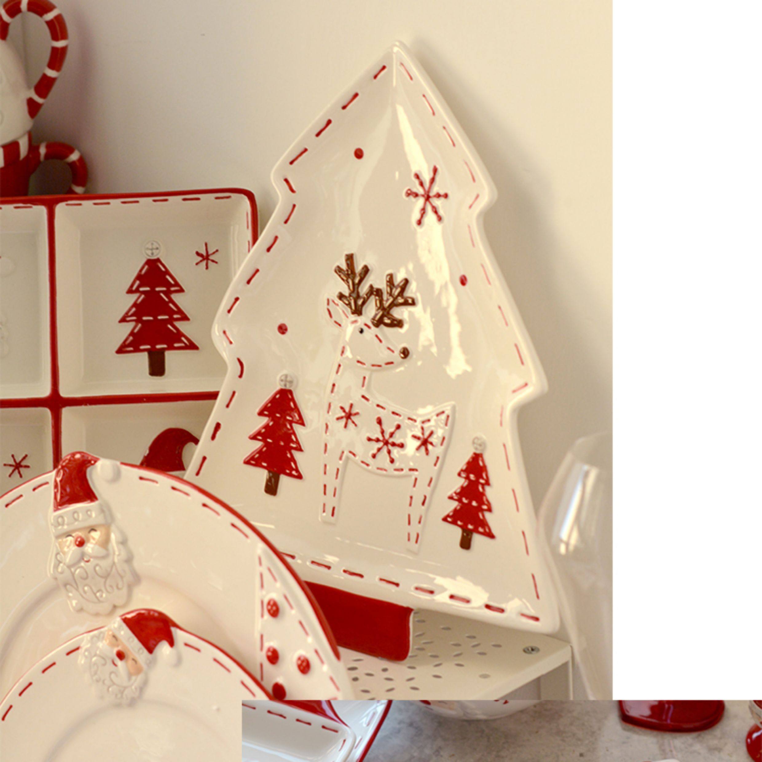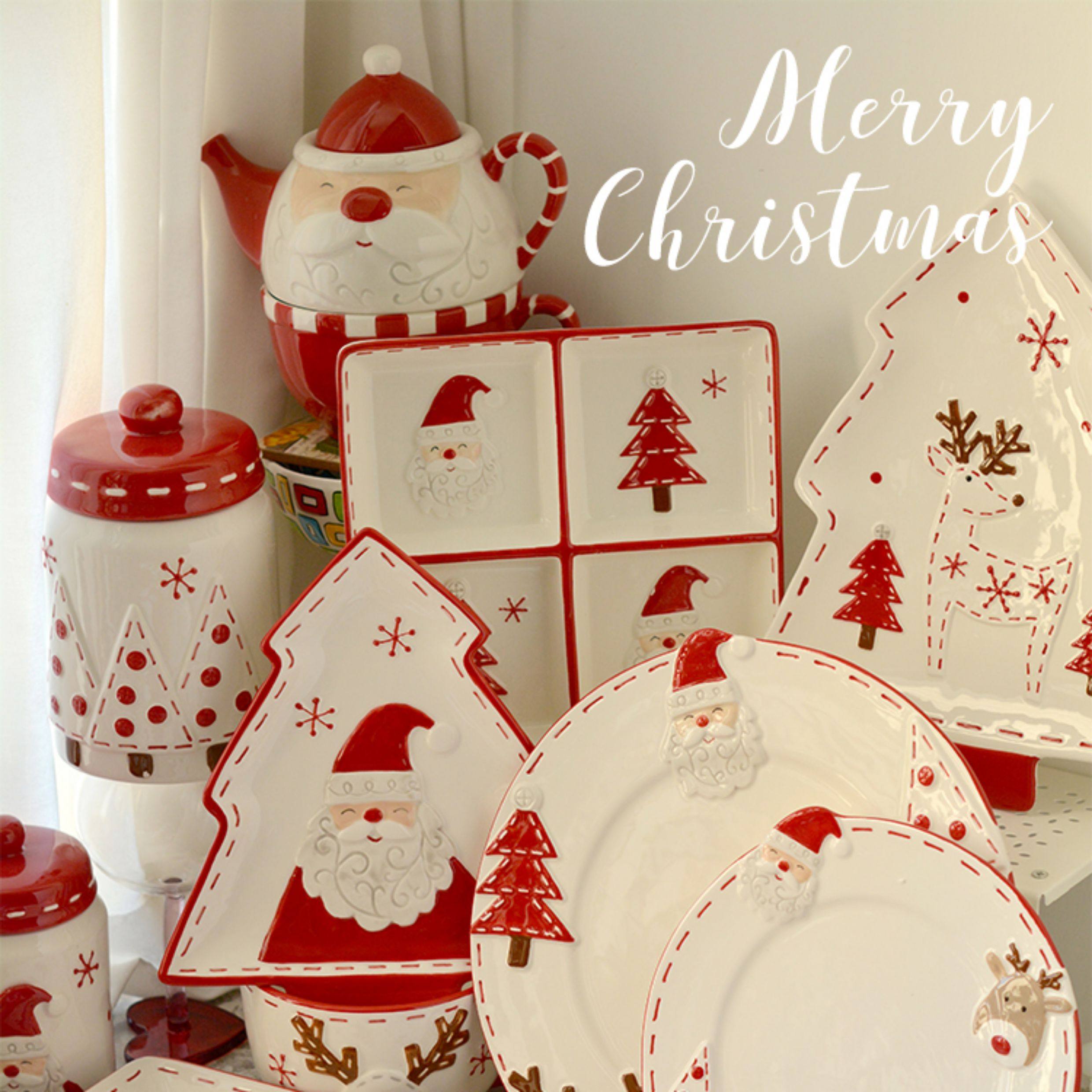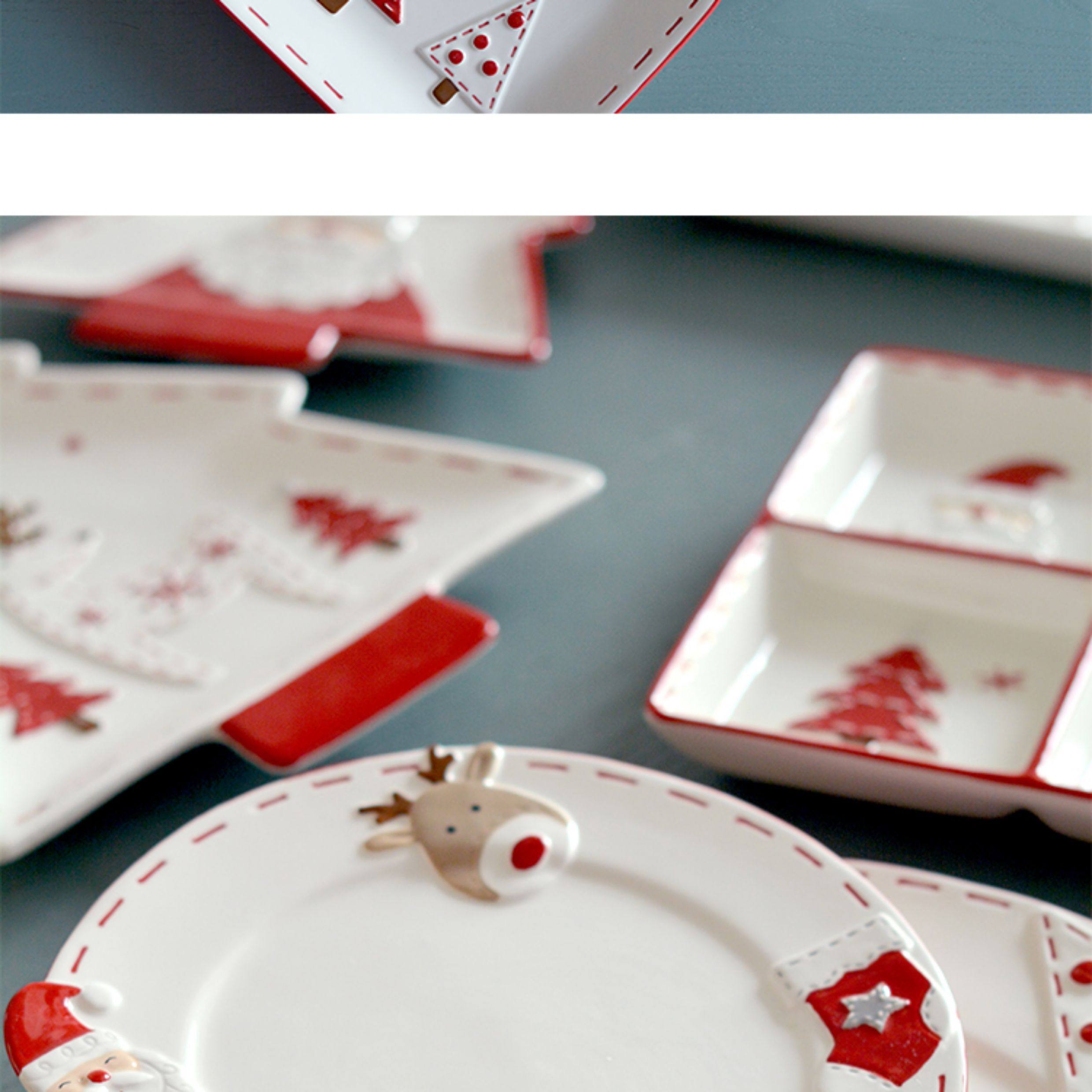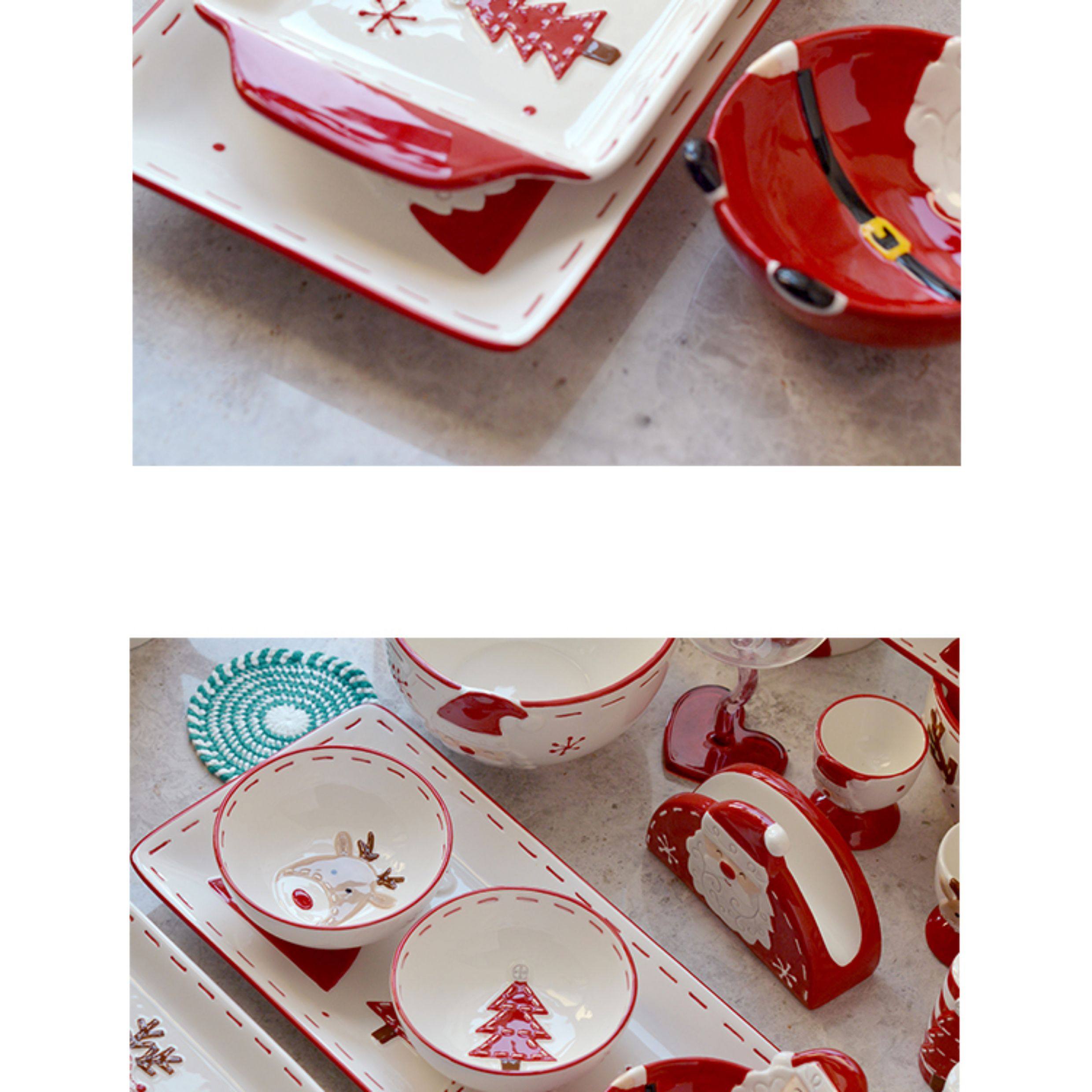 圣诞手绘陶瓷餐具套装可爱牛排盘浮雕釉彩平盘密封罐茶具陶瓷碗 投诉