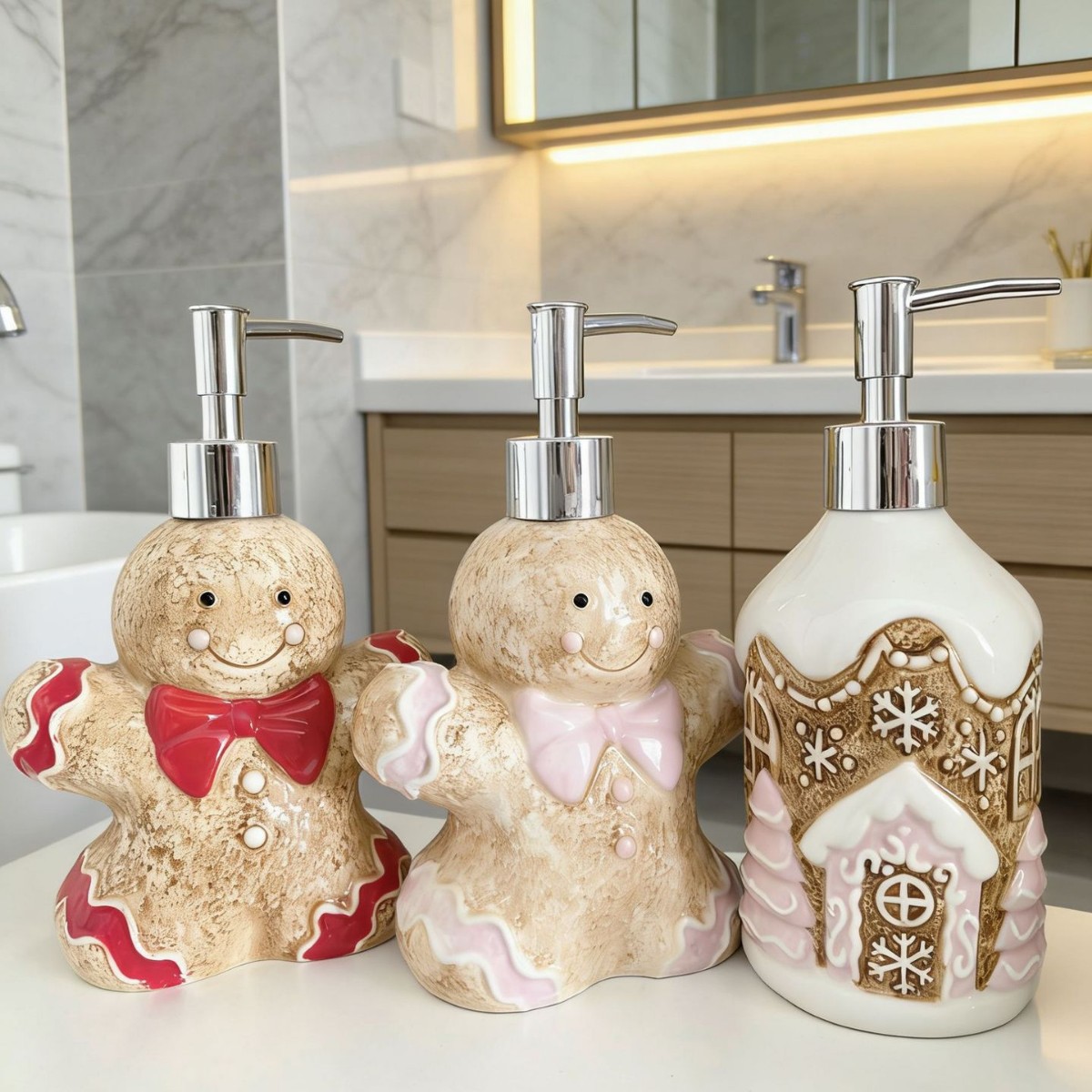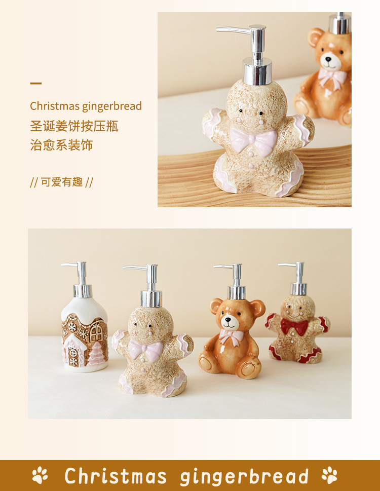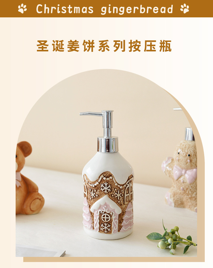 陶瓷分装家居可爱瓶子圣诞姜饼人姜饼屋熊洗浴瓶乳液沐浴瓶收纳