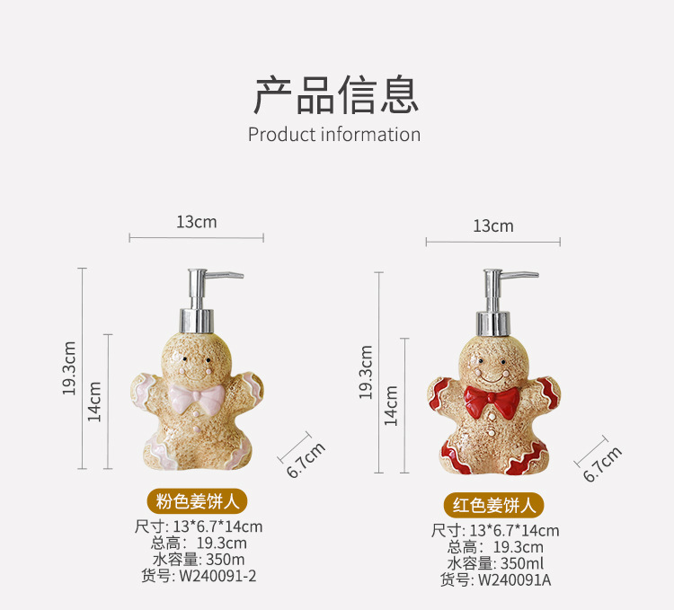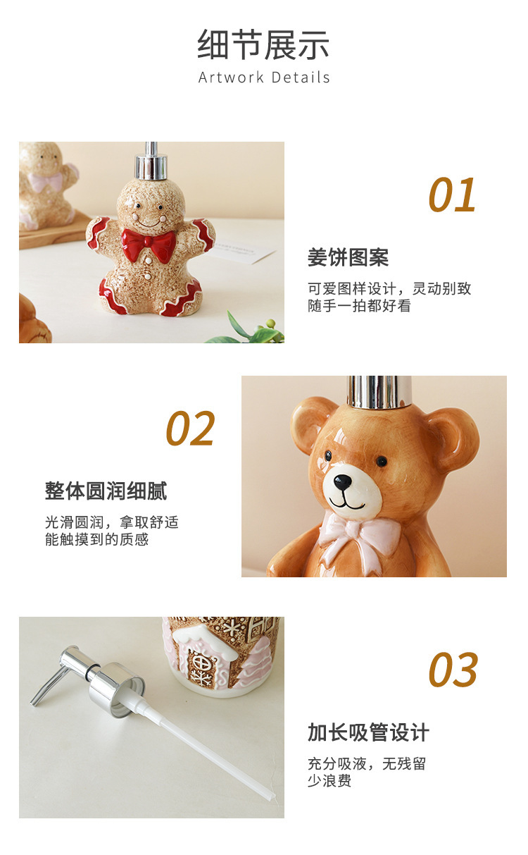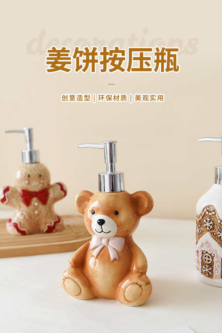 陶瓷分装家居可爱瓶子圣诞姜饼人姜饼屋熊洗浴瓶乳液沐浴瓶收纳 投诉
