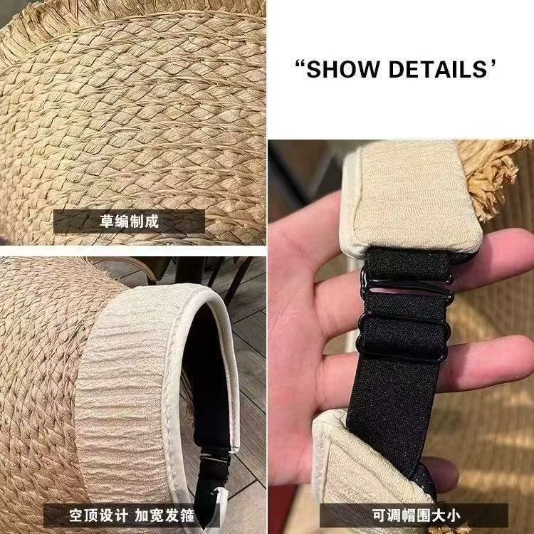 产品类别: 草帽 功能: 透气,防风,遮阳 面料名称: 草编 处理工艺: 经编 品牌: 无 风格: 欧美风,简约风,百搭风,极简风,优雅风, 货号: 草编空顶遮阳帽 图案: 条纹 适合季节: 四季 产地: 洛阳 帽顶款式: 无顶 帽檐款式: 大檐 颜色: 黑色,米色,卡其色,咖啡色 尺码: 均码 是否跨境出口专供货源: 否 主要下游平台: 其他 上市年份/季节: 2026年春季 是否可调节: 不可调节 是否可折叠: 可折叠 风格分类: 时尚通勤 重量: 1.0 kg/顶