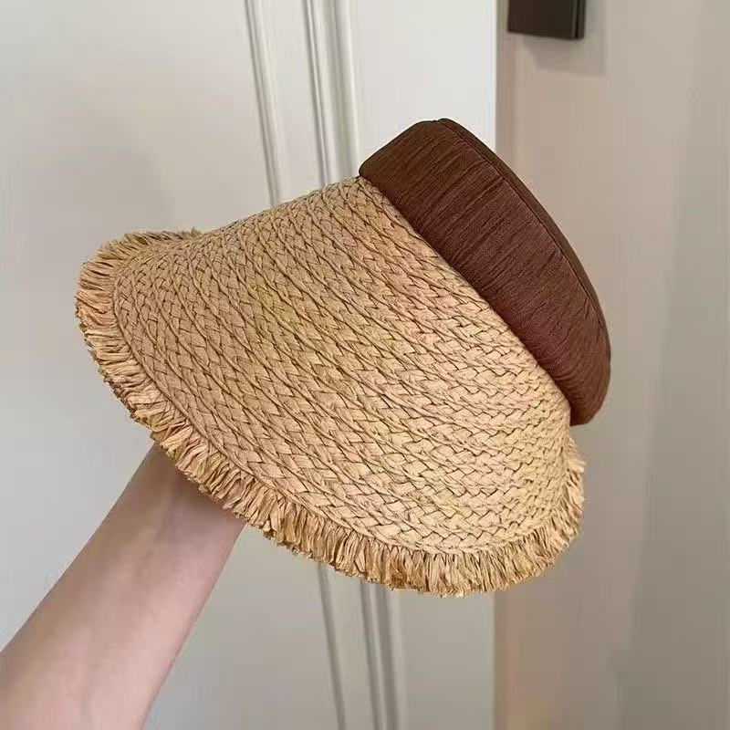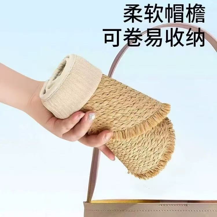 2025年夏季草编可折叠拉菲草毛边大檐防晒帽女夏季出游遮阳防紫外
