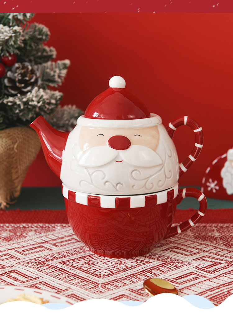 北欧圣诞老人创意茶壶咖啡杯壶套装 陶瓷水壶花茶具子母壶一人杯