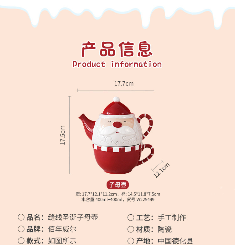 北欧圣诞老人创意茶壶咖啡杯壶套装 陶瓷水壶花茶具子母壶一人杯 投诉