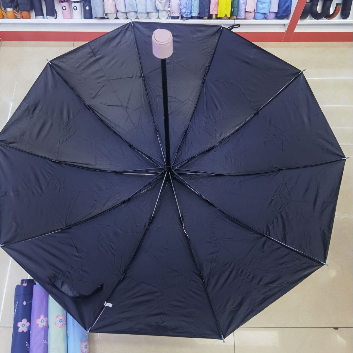 伞骨数量: 10骨 款式: 三折伞 伞布材质: 黑胶 伞骨材质: 铁 伞布过胶: 黑胶 中棒材质: 铁 收伞方式: 手动 风格: 现代简约 重量: 0.352 kg/个