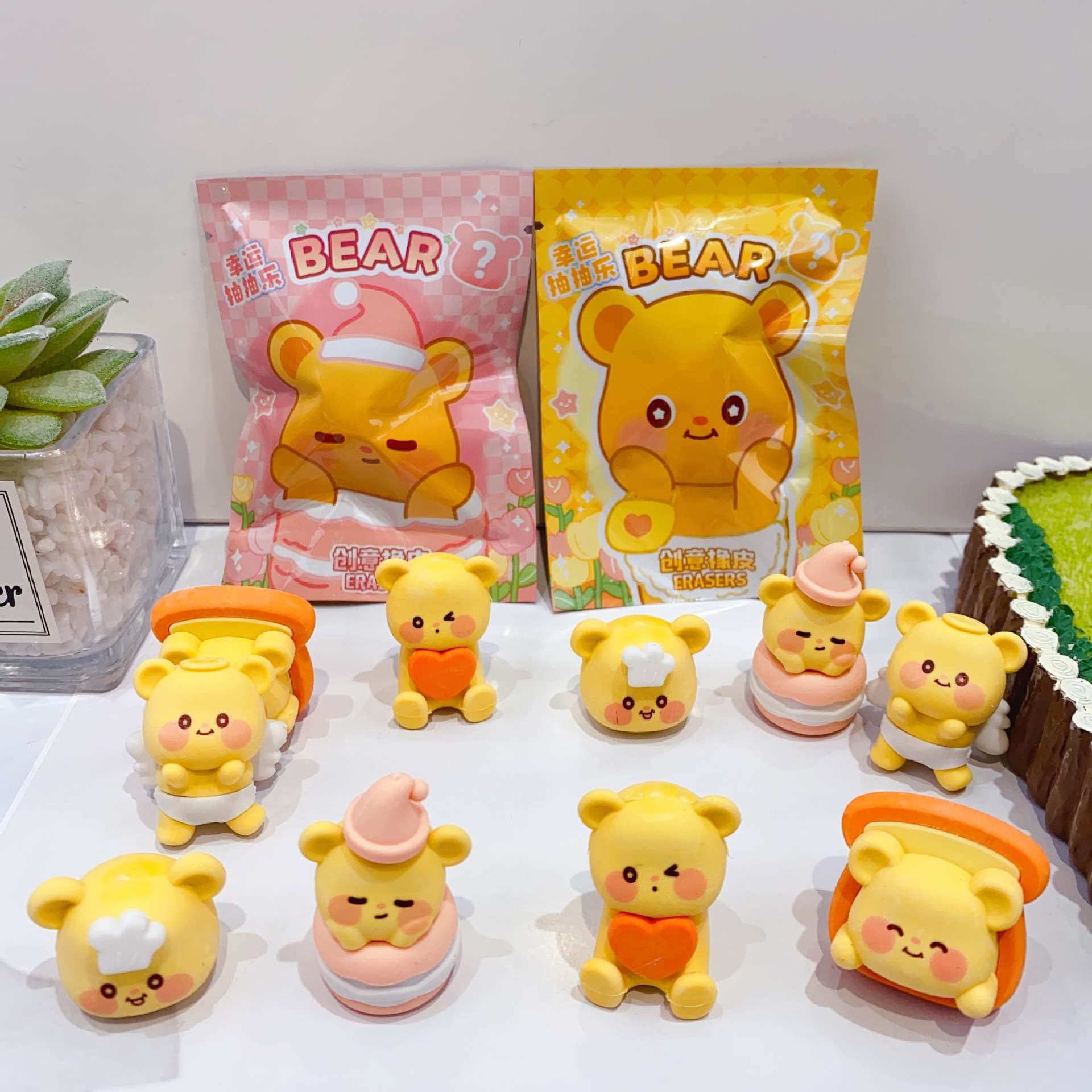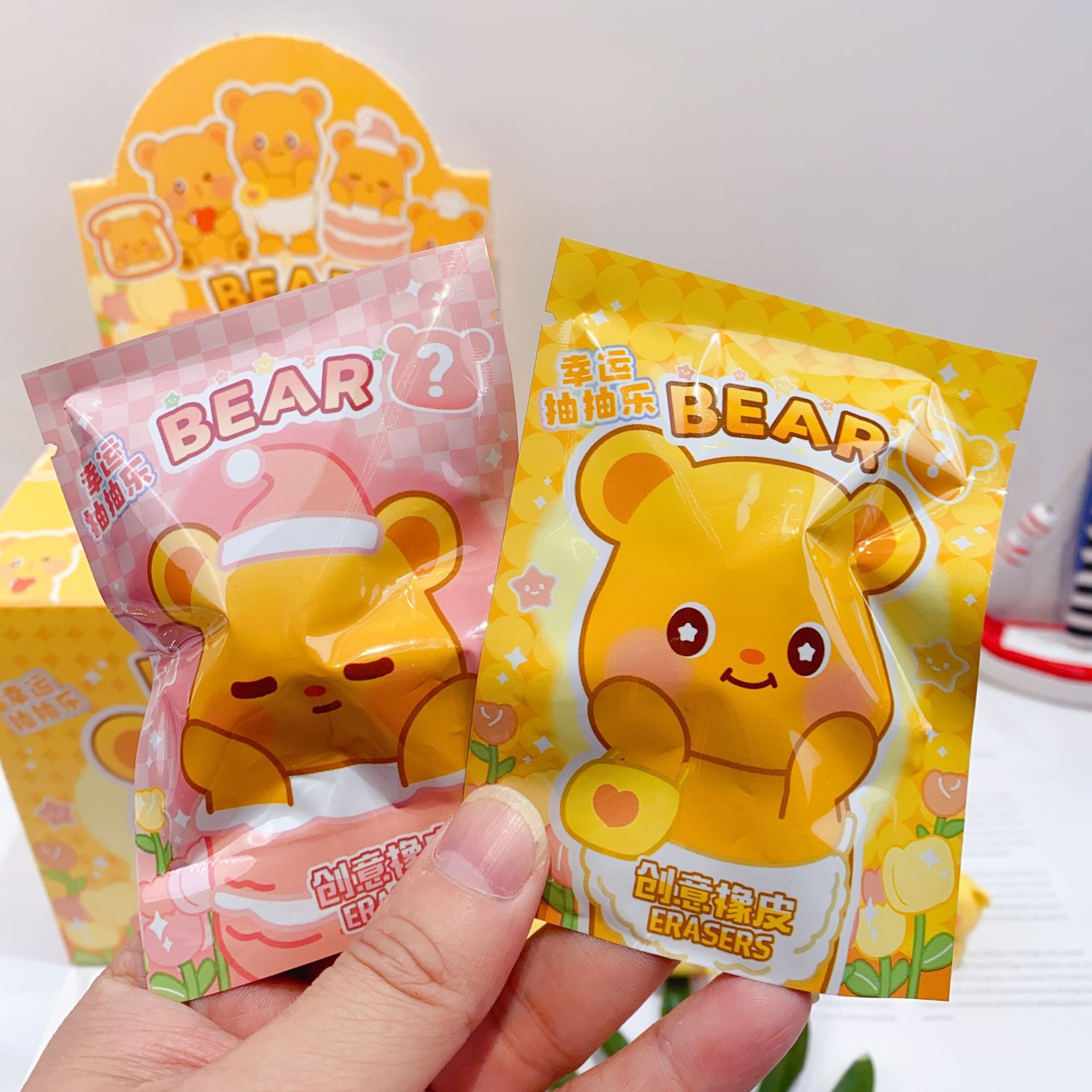 新款卡通黄油小熊橡皮擦盲袋可爱学生橡皮擦盲盒抽抽乐擦得干净