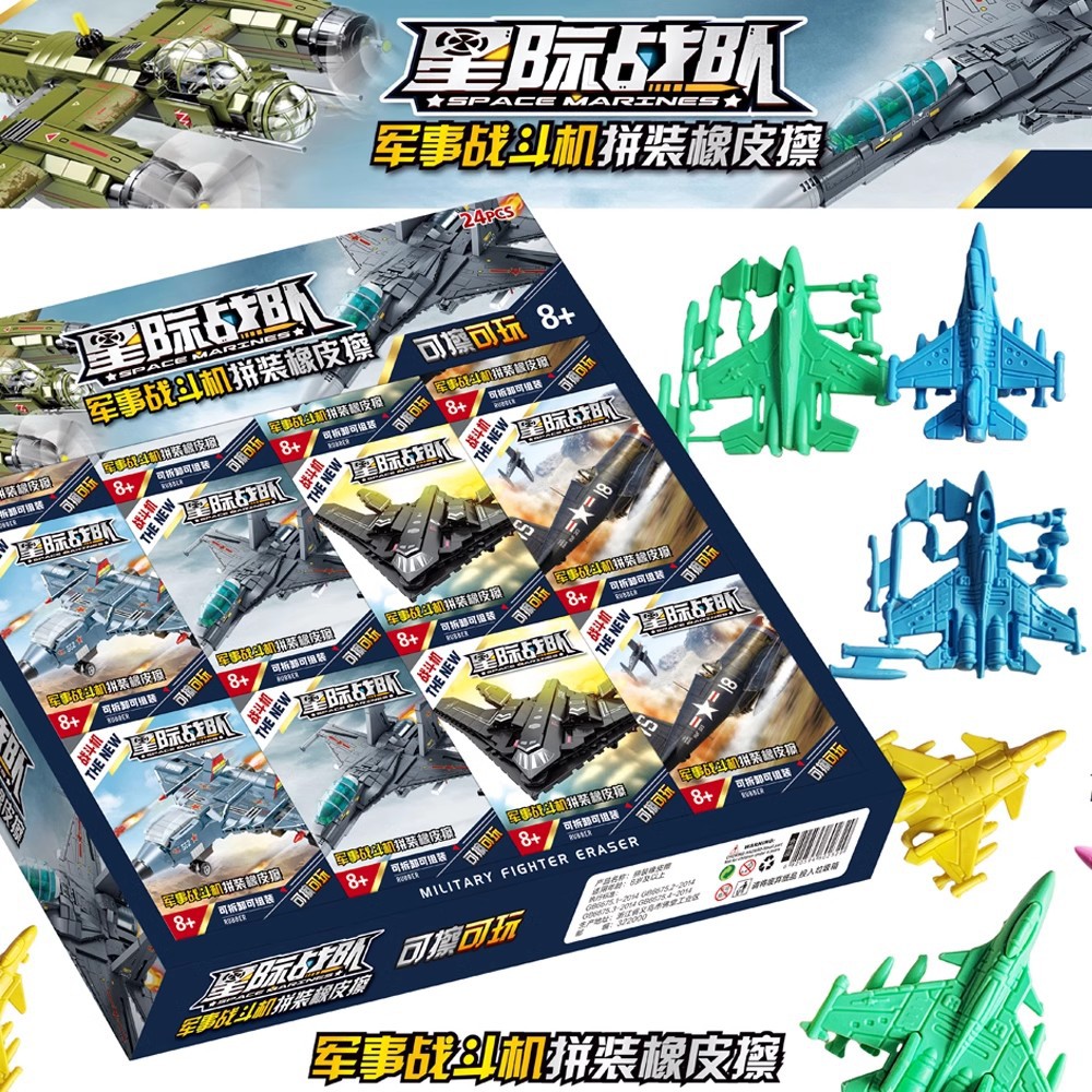 1元24入创意拼装飞机军事战斗机橡皮擦可拆卸组装男孩子吃鸡武器