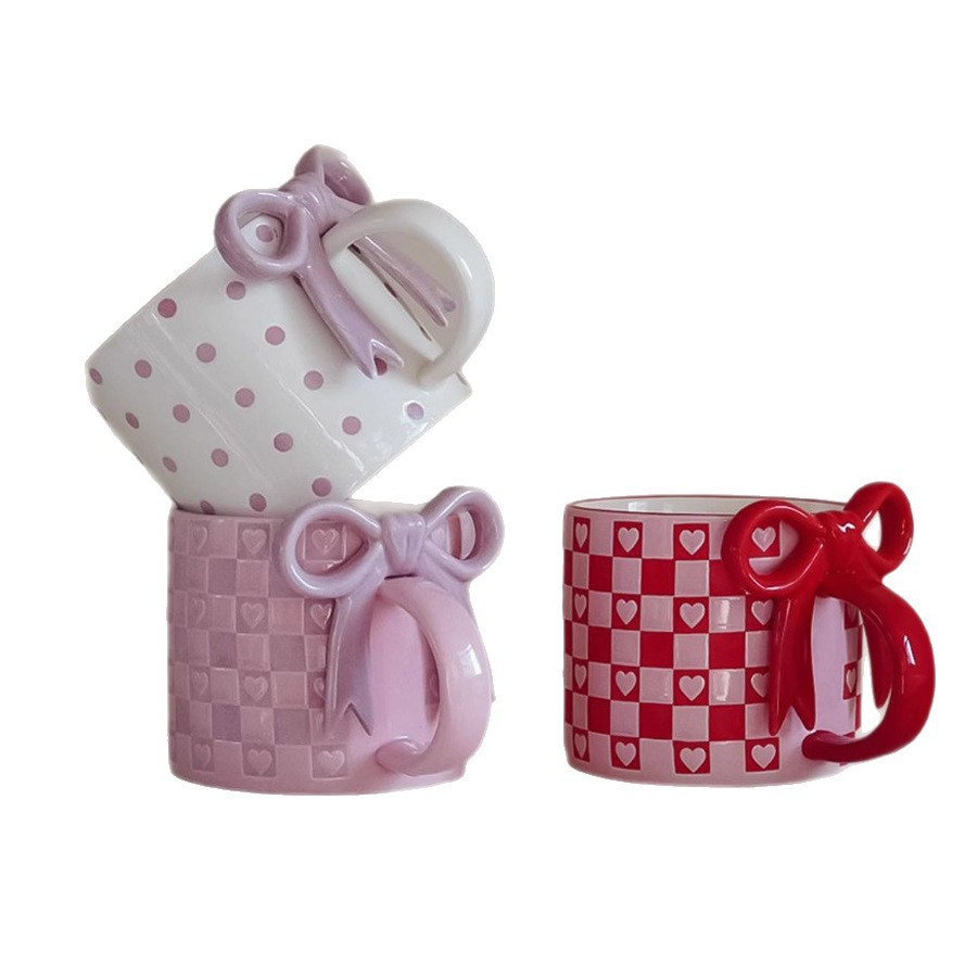 产品:爱心蝴蝶结陶瓷马克杯