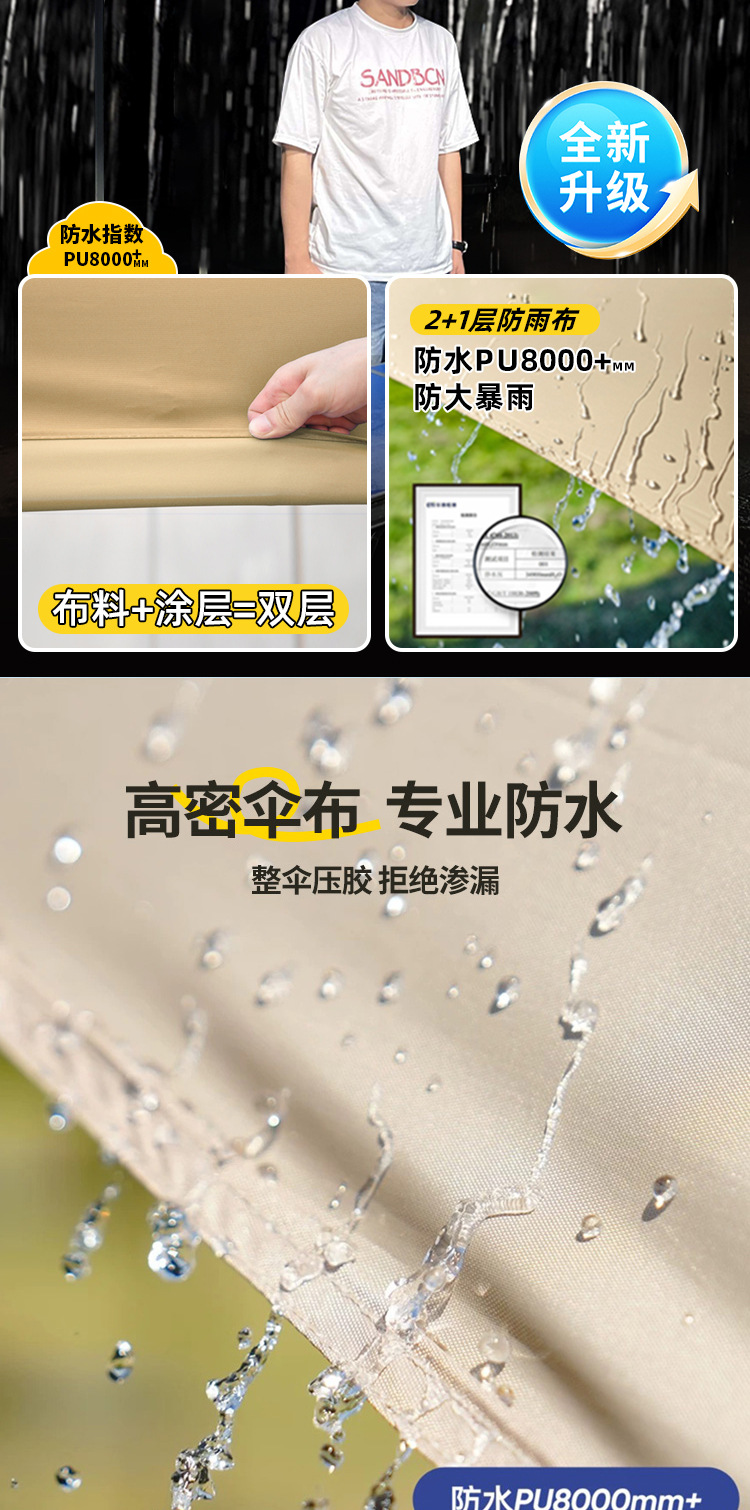 特粗加厚黑六棱3x3+3面围布纯布款 卡其色 【防雨挡风】 ¥34000 3539套可售
