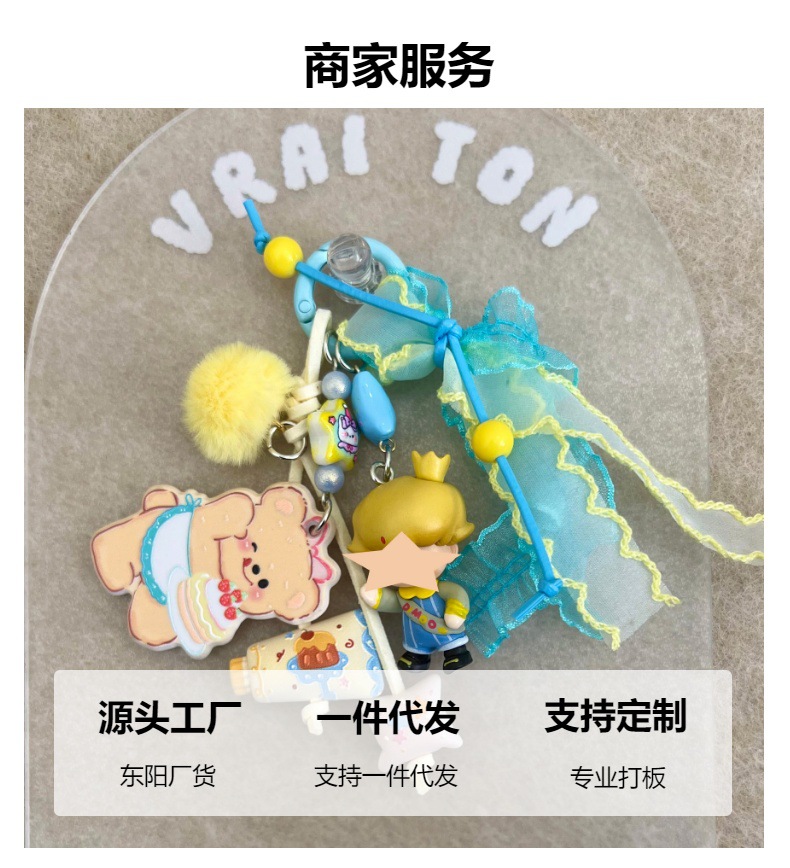 原创手工diy手机链挂绳潮玩公仔盲盒dim改娃萌粒oo串珠钥匙链包挂 投诉