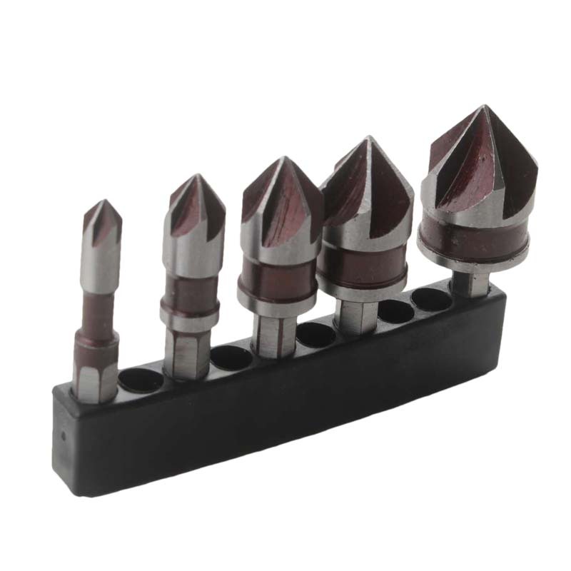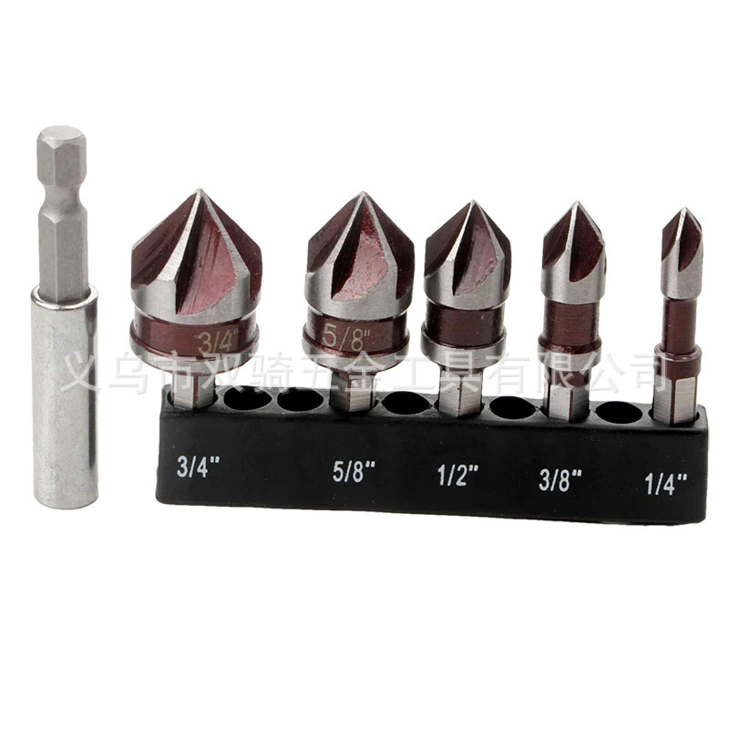 跨境厂5件套红色82°六角柄五刃倒角器 倒角刀锪钻螺钉沉头沉孔钻