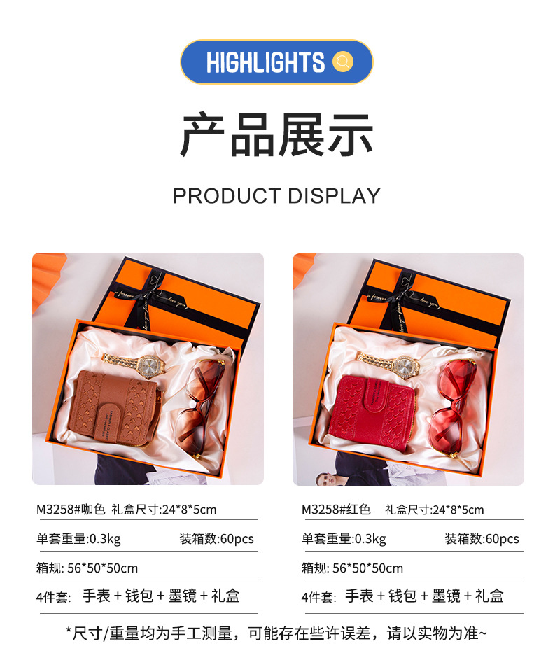 跨境伴手礼套装钱包手表墨镜礼盒送女友时尚创意伴手礼情人节礼物 投诉