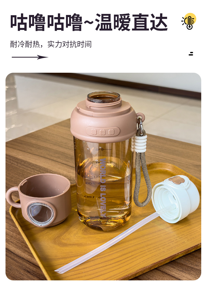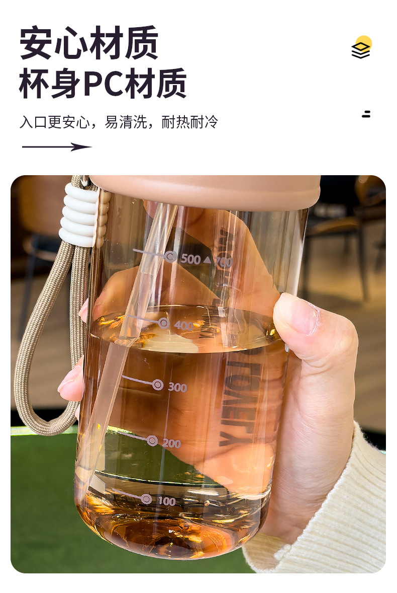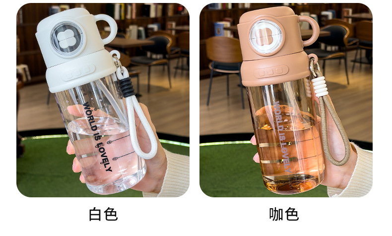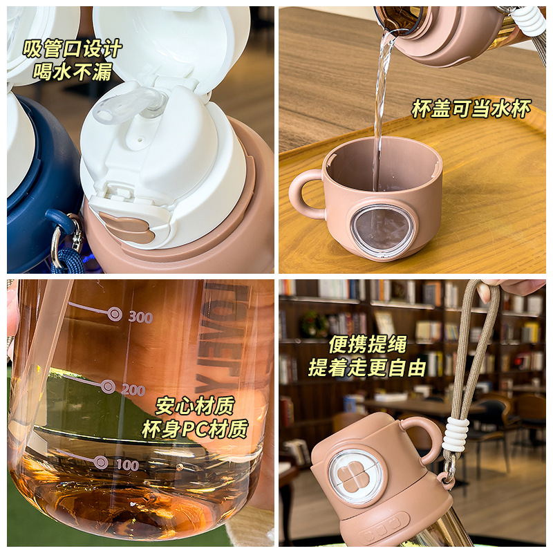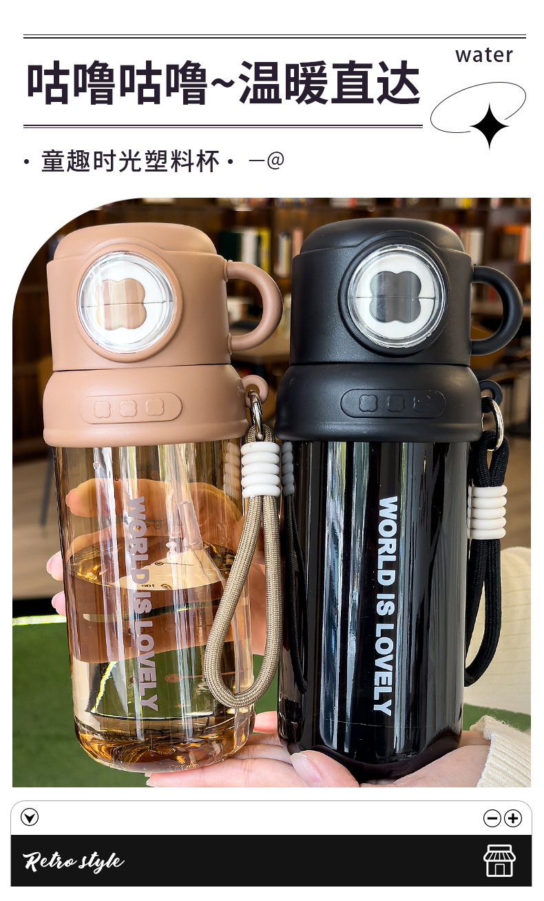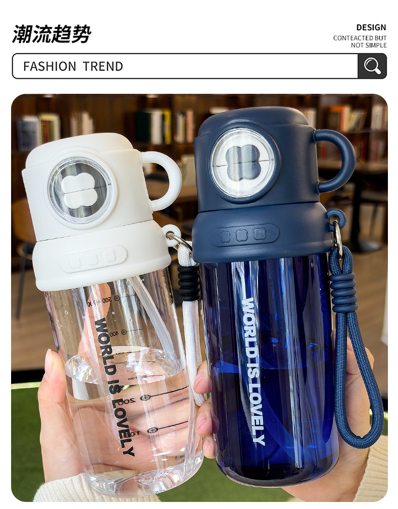 夏季童趣时光塑料杯提绳便携户外运动儿童水杯带刻度学生吸管杯子 English | 投诉