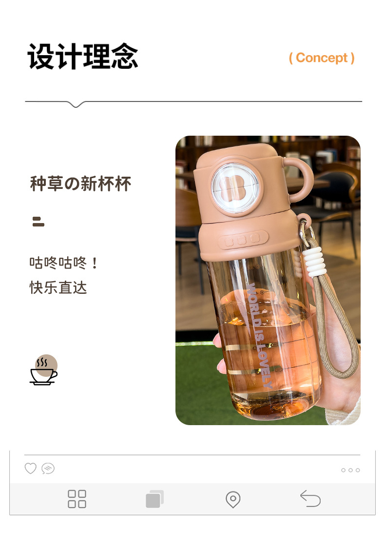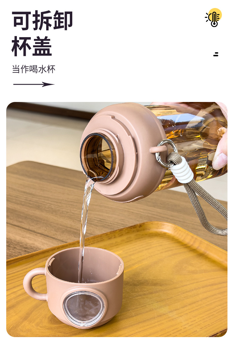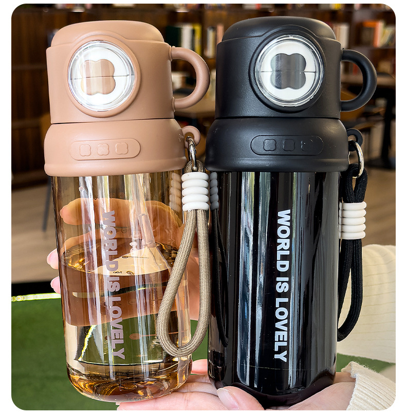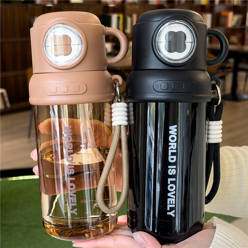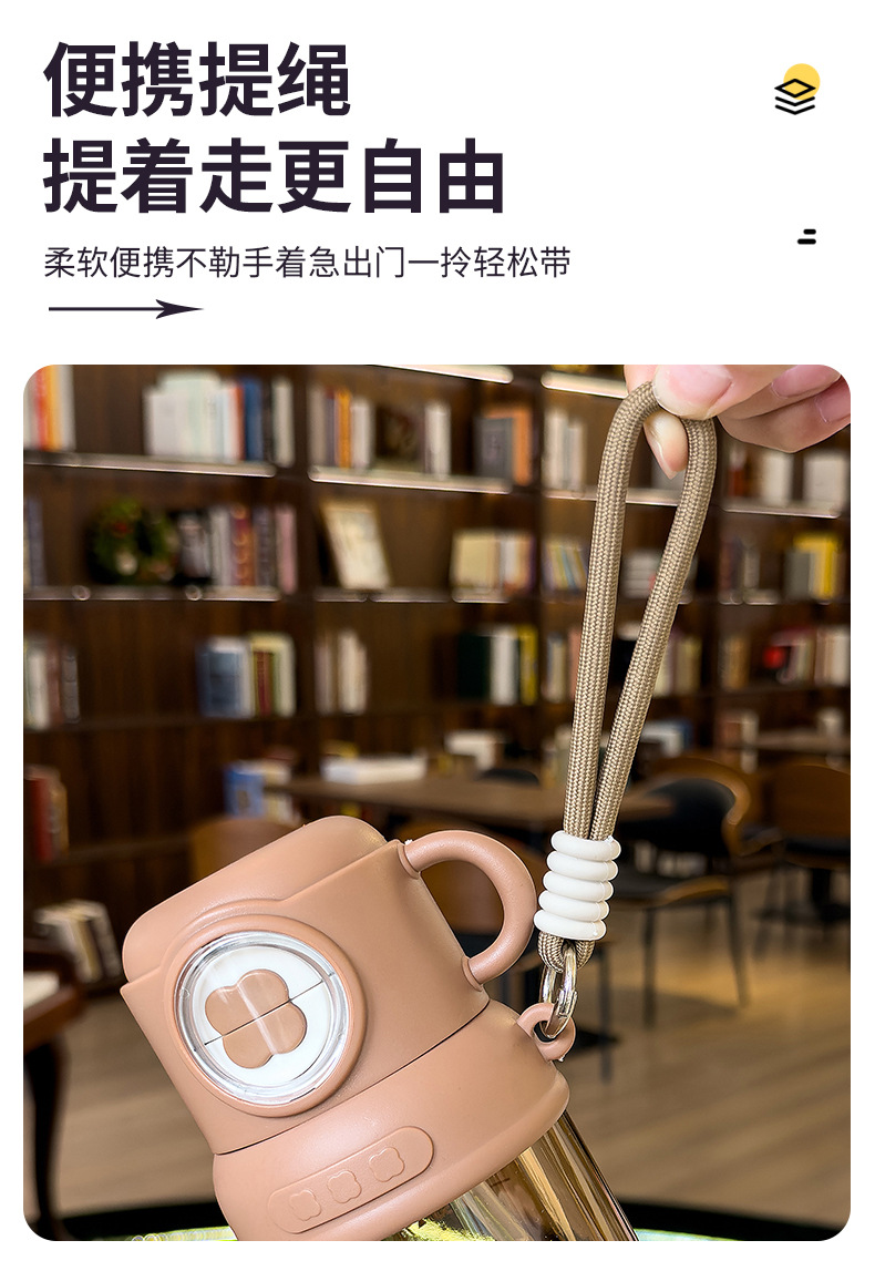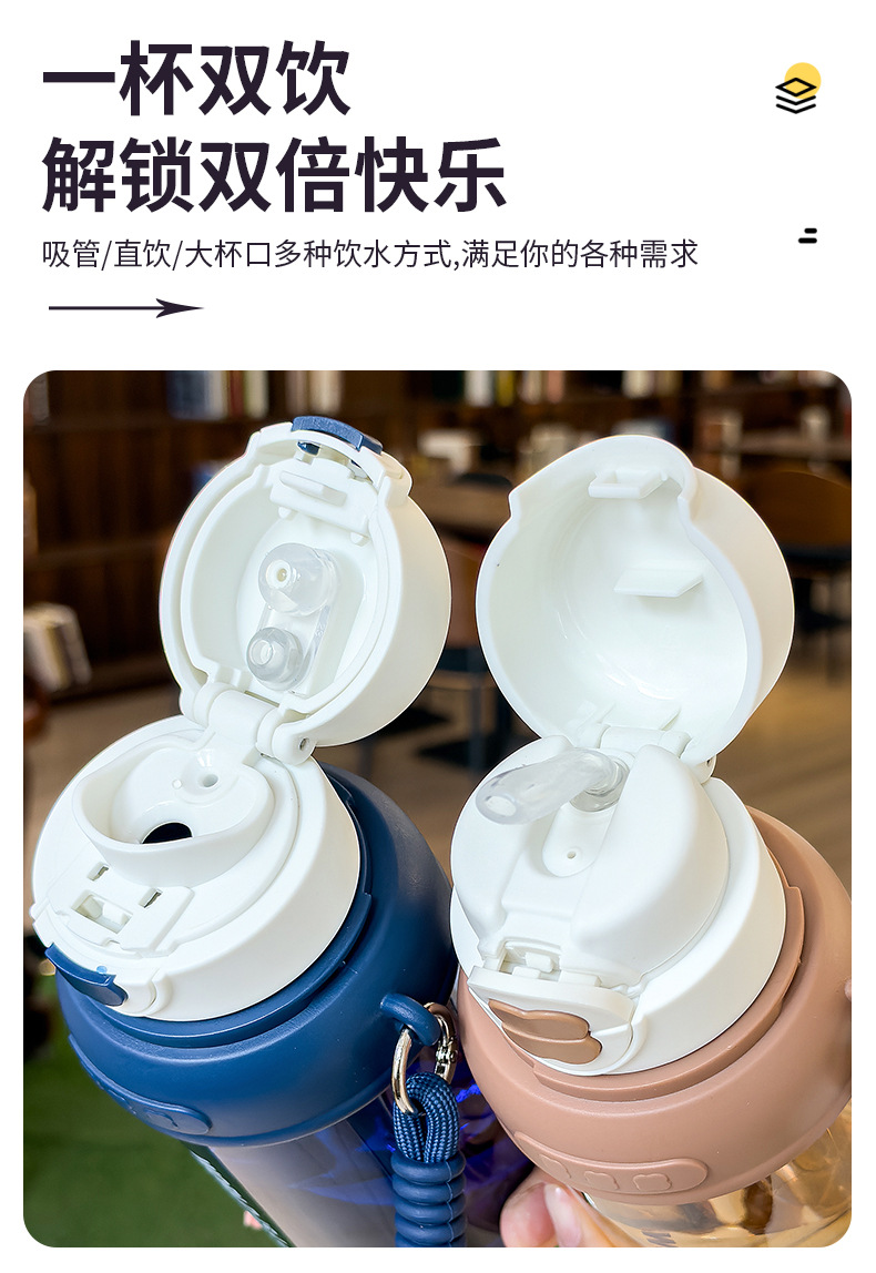 夏季童趣时光塑料杯提绳便携户外运动儿童水杯带刻度学生吸管杯子 English | 投诉