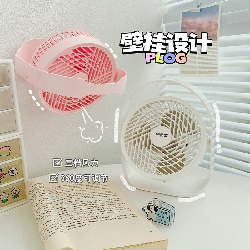 新款简约桌面壁挂式小型台扇 户外露营USB充电长续航便携式三档风