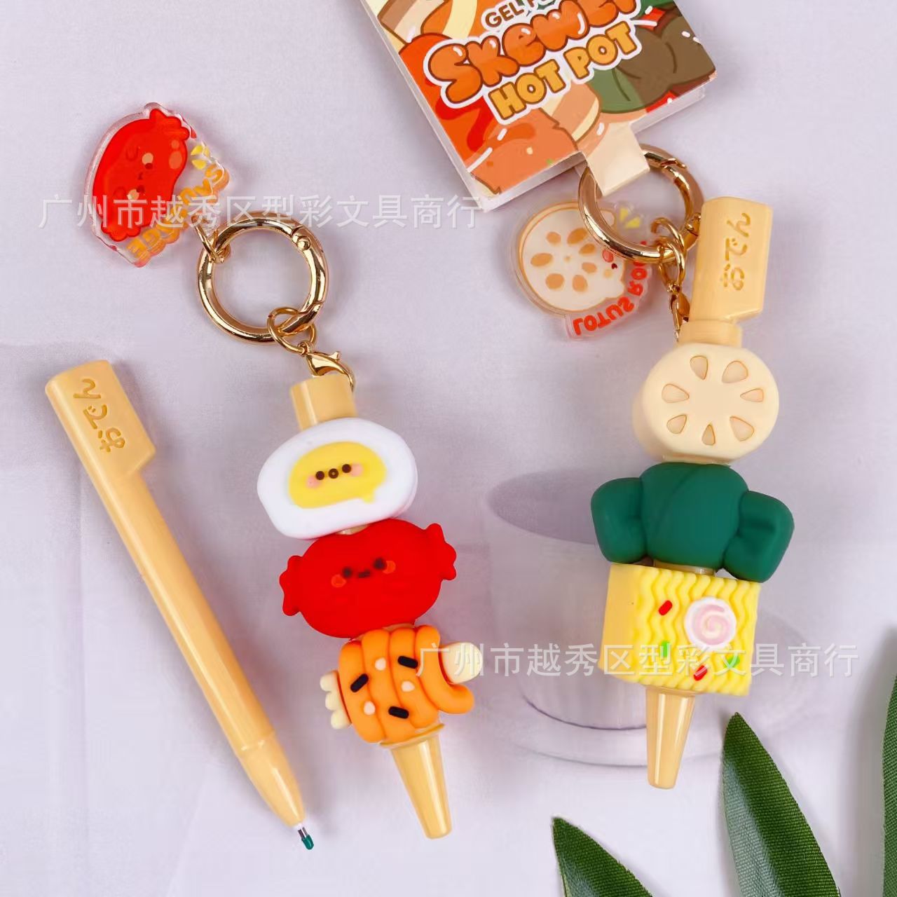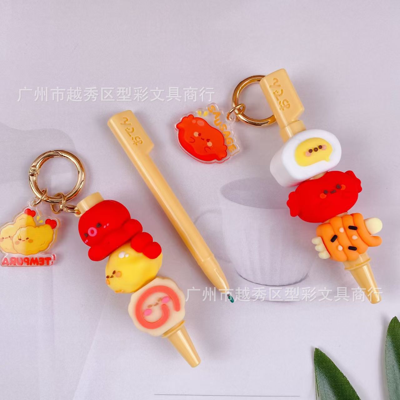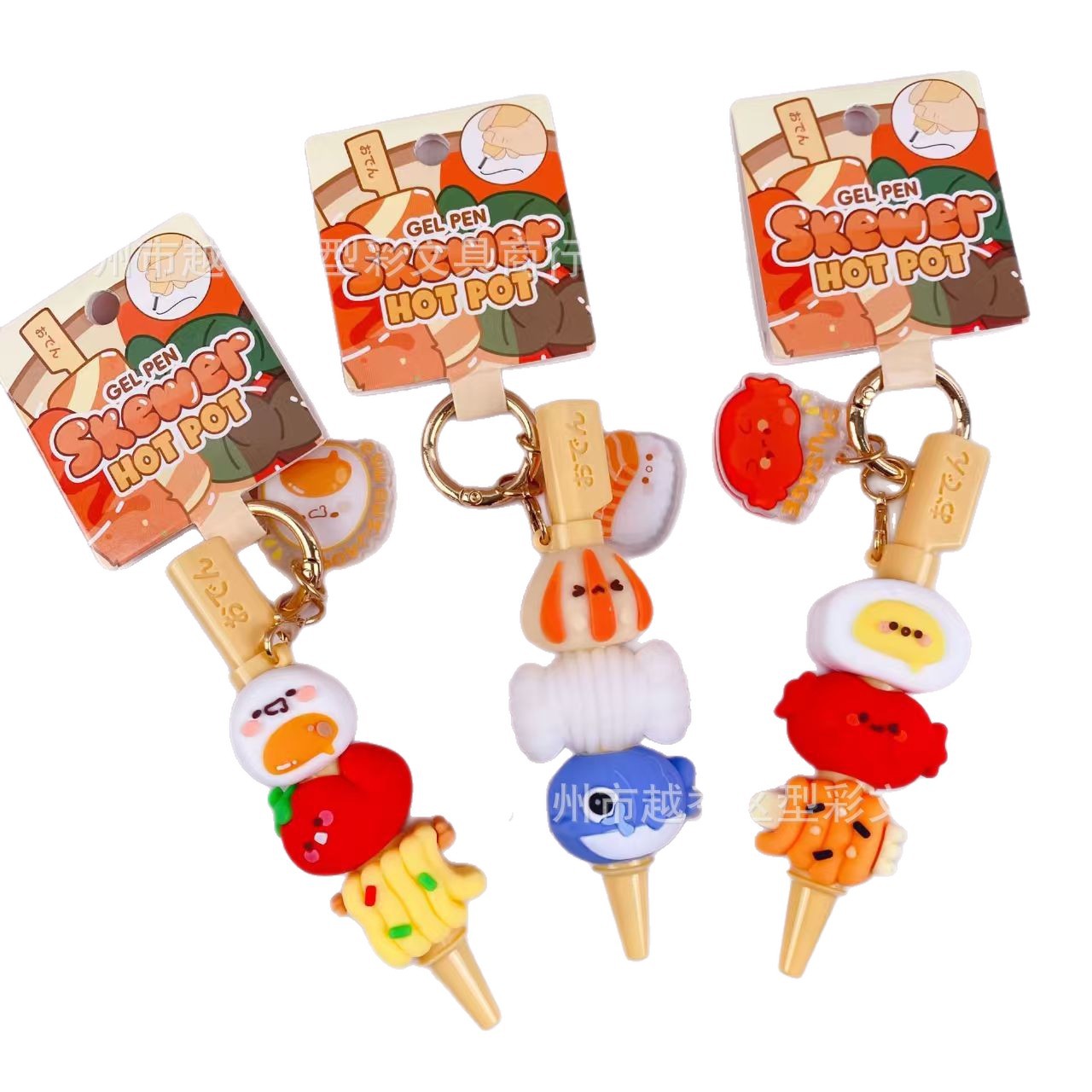 创意串串香潮玩挂件笔 趣味钥匙扣仿真食玩装饰解压中性笔