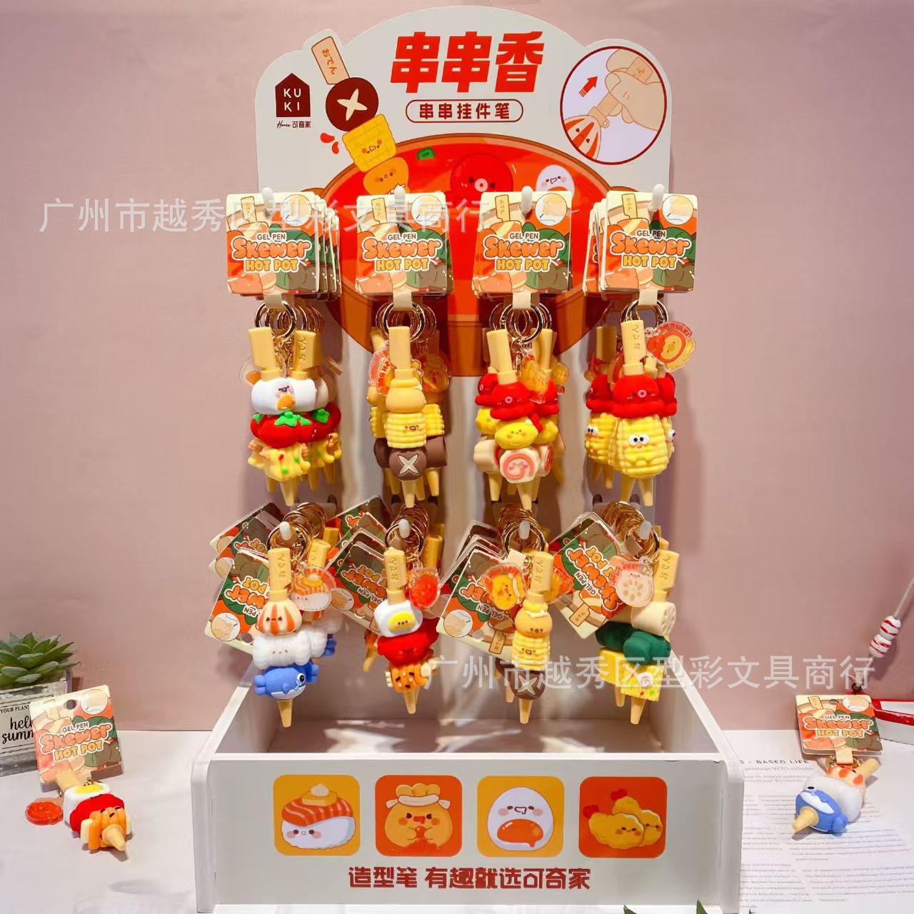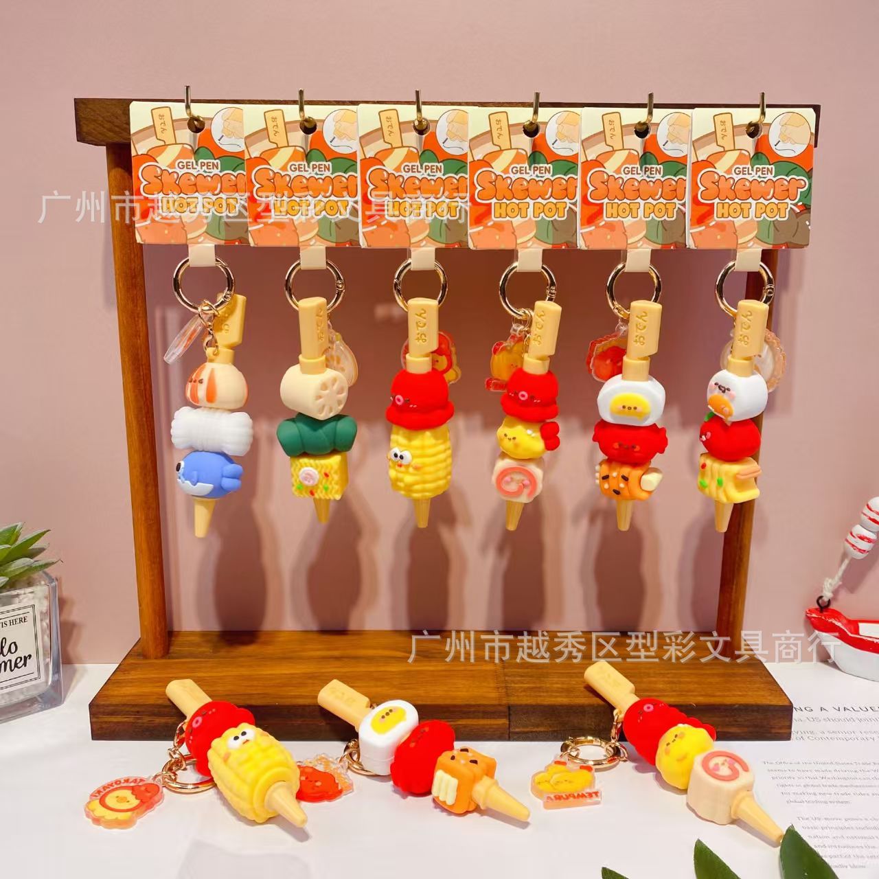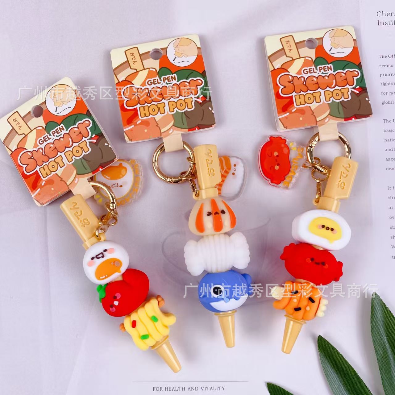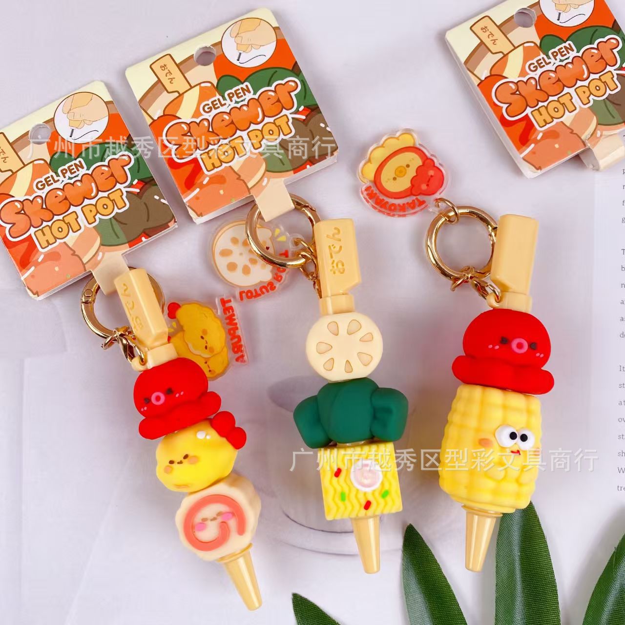 创意串串香潮玩挂件笔 趣味钥匙扣仿真食玩装饰解压中性笔