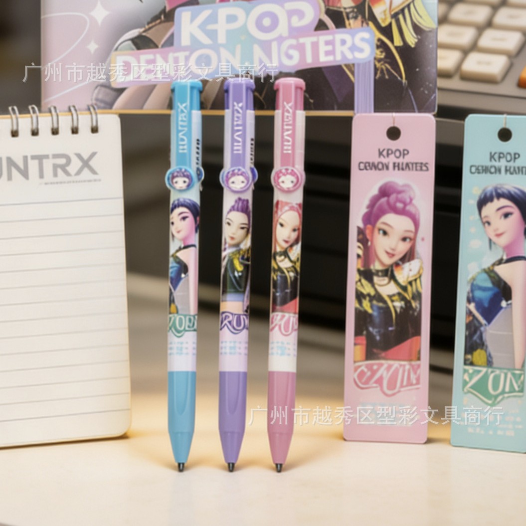 跨境新品KPOP猎魔女团按动圆珠笔 卡通可爱学生作业写字笔