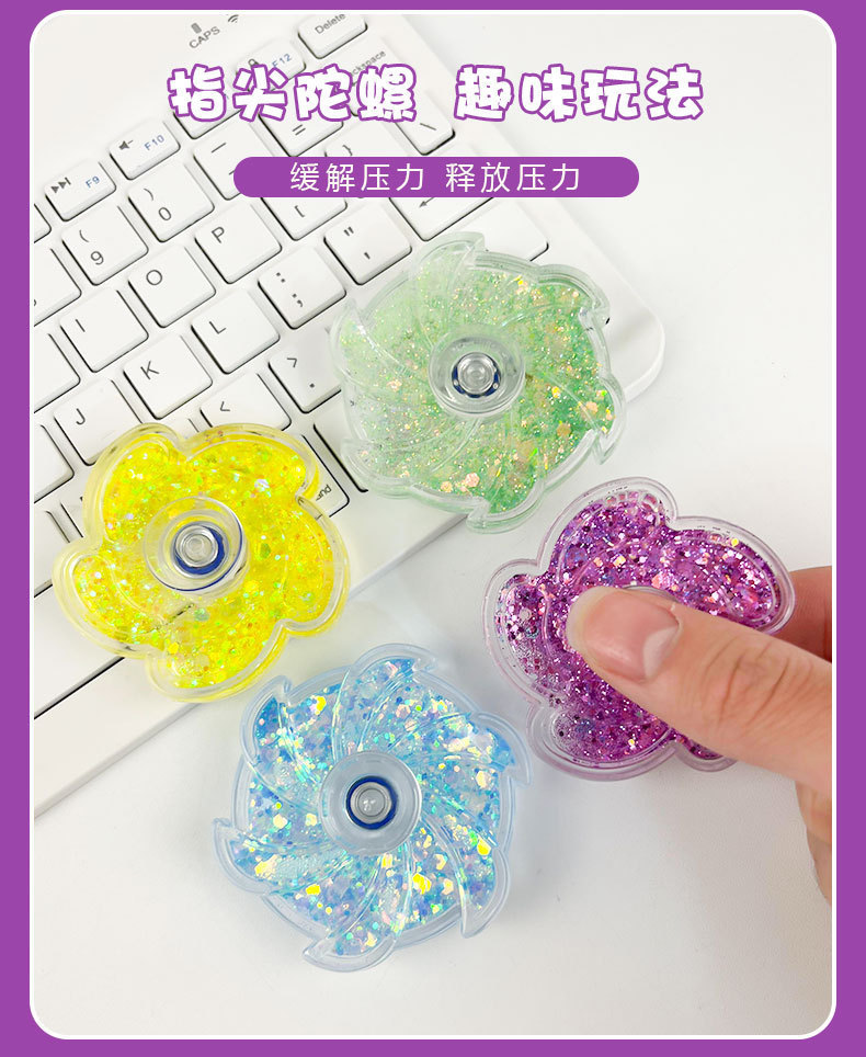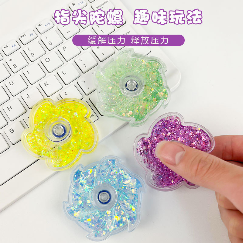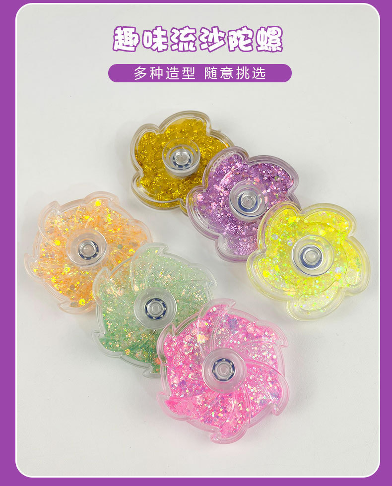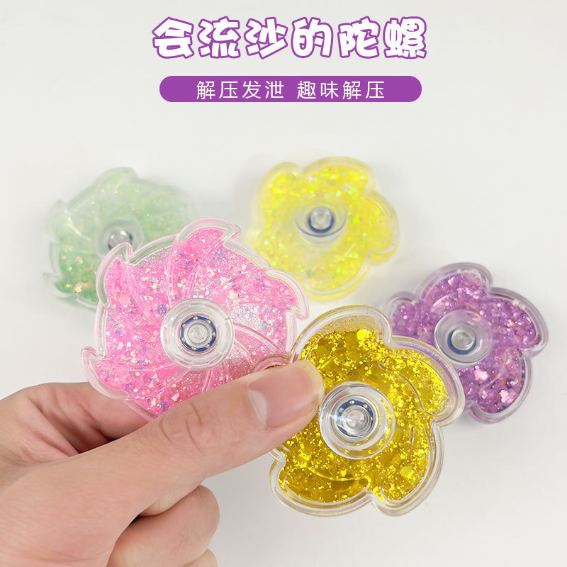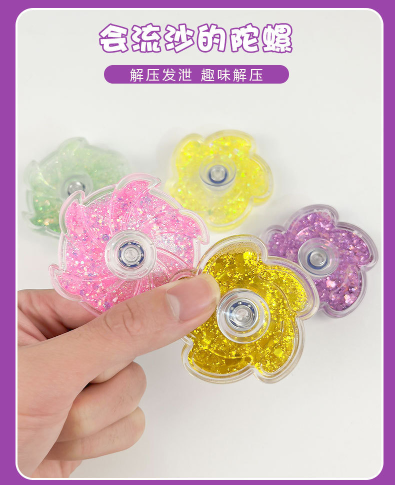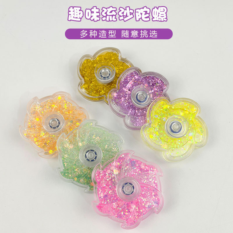 新款创意流沙花瓣彩粉手指流沙陀螺益智高速指尖陀螺玩具旋转陀螺