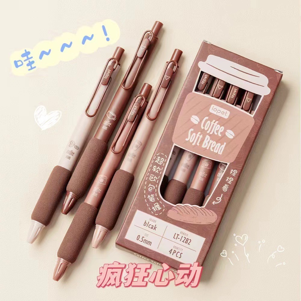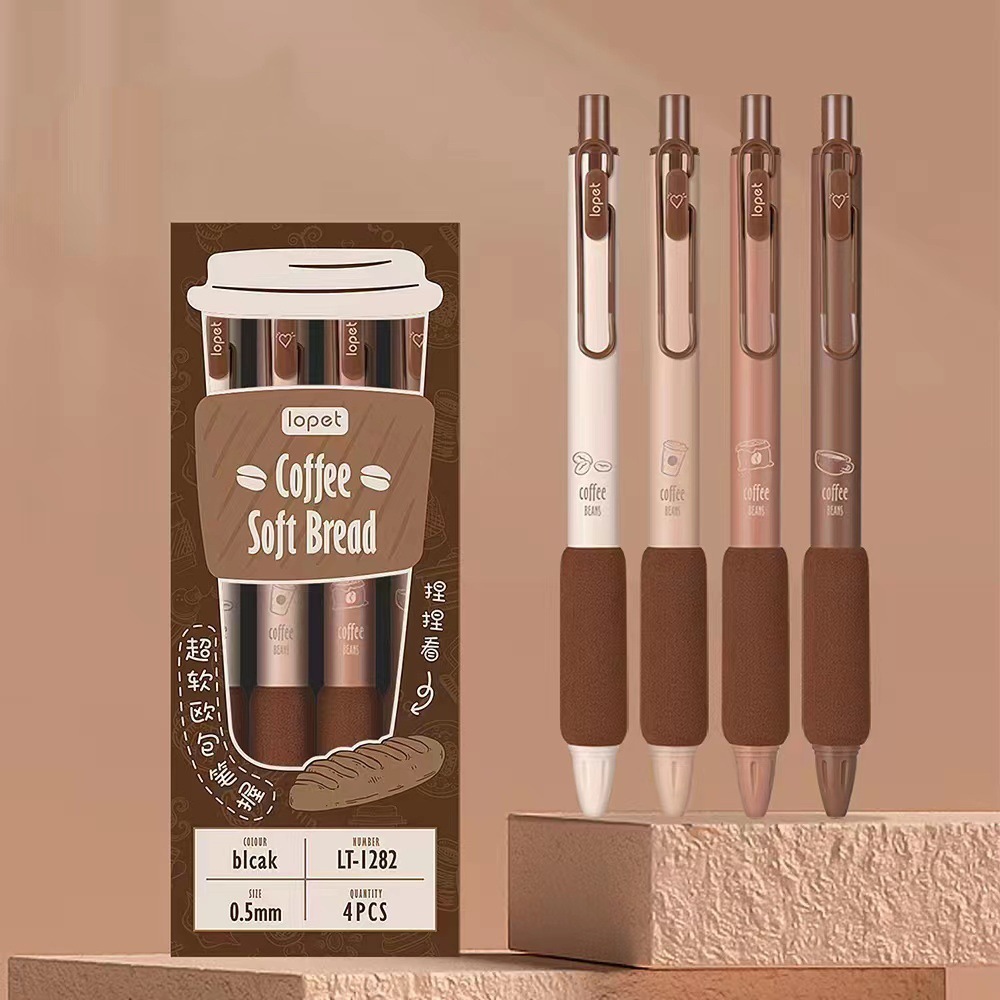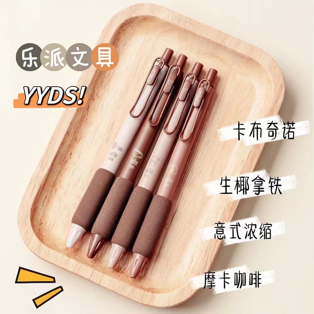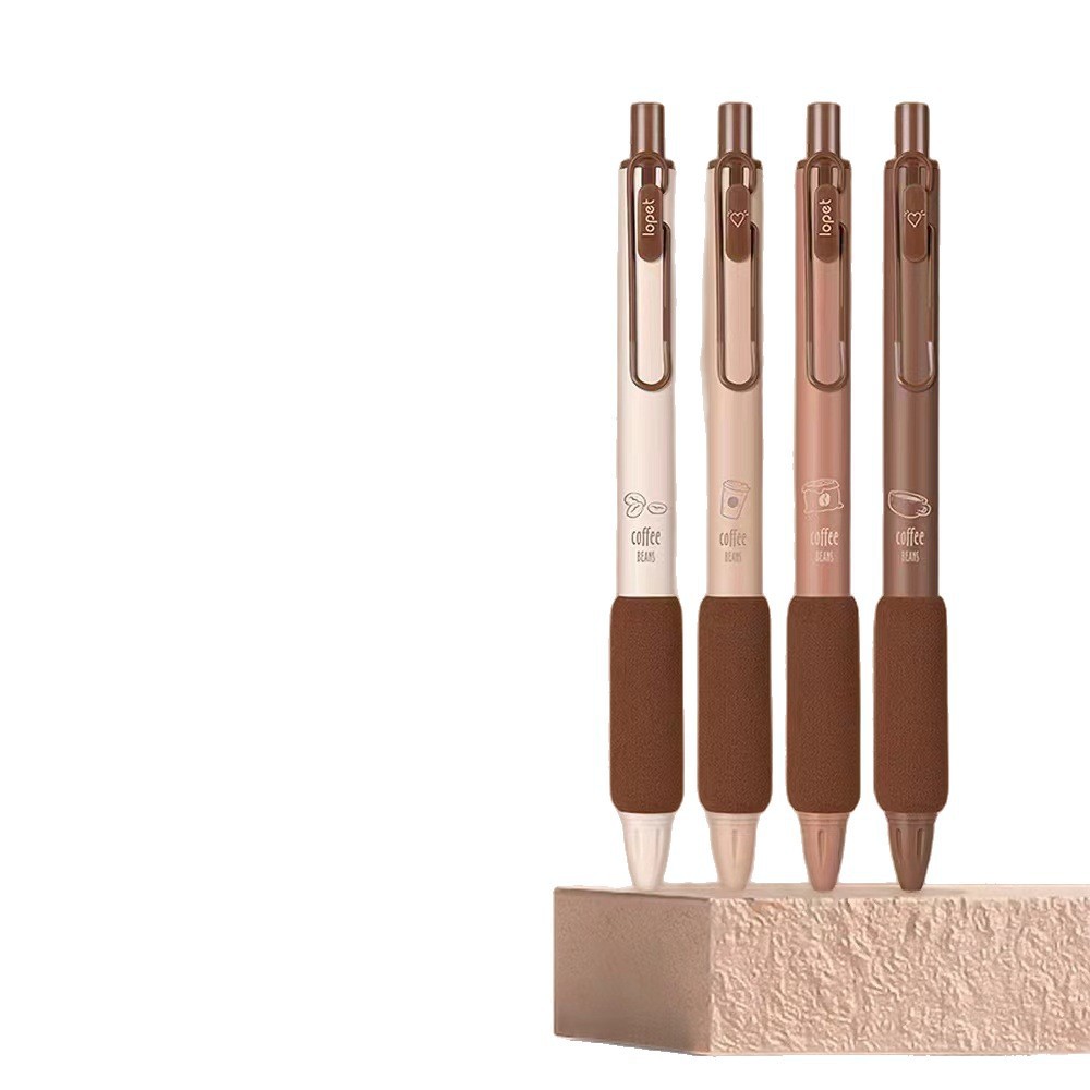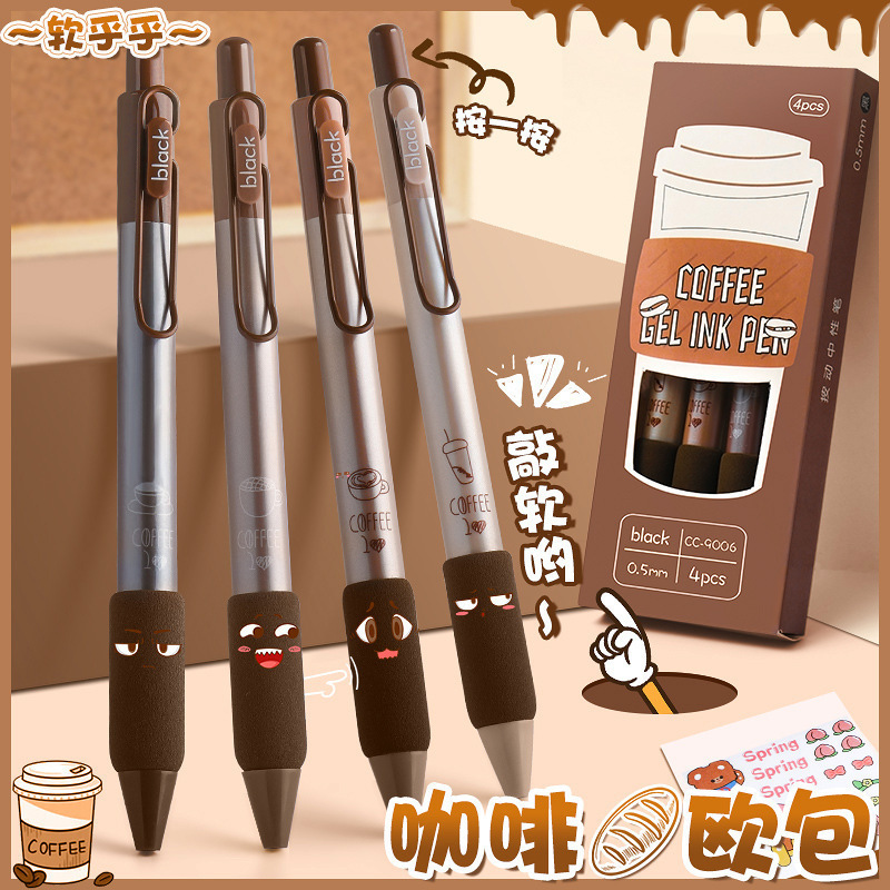 创意咖啡系列按动中性笔学生必备海绵护套ST头碳素速干刷题签字笔 English | 投诉
