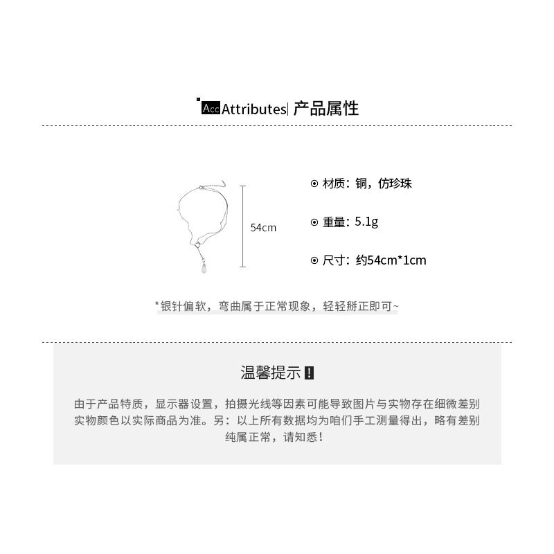 材质: 仿珍珠 处理工艺: 电镀 链子样式: 蜡绳链 坠子材质: 仿珍珠 品牌: 宝钰饰品厂 流行元素: 椭圆 造型: 几何型 货号: HN11329 产地: 义乌 是否多层: 否 周长: 51cm(含)-60cm(含) 颜色: 项链-银色 有可授权的自有品牌: 是 是否跨境出口专供货源: 是 上市年份/季节: 2026年春季 风格: 轻奢风 适用场景: 日常 重量: 5.1g 风格分类: 时尚通勤 适用人群: 女式 重量: 0.5 kg/条