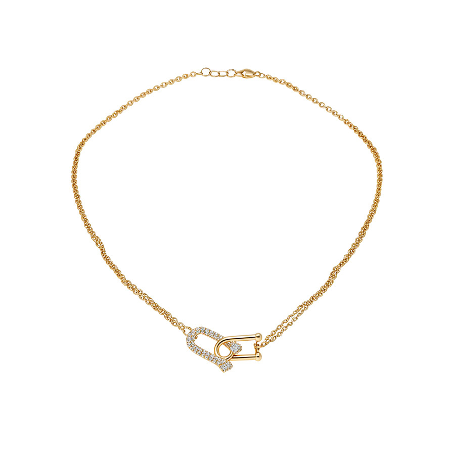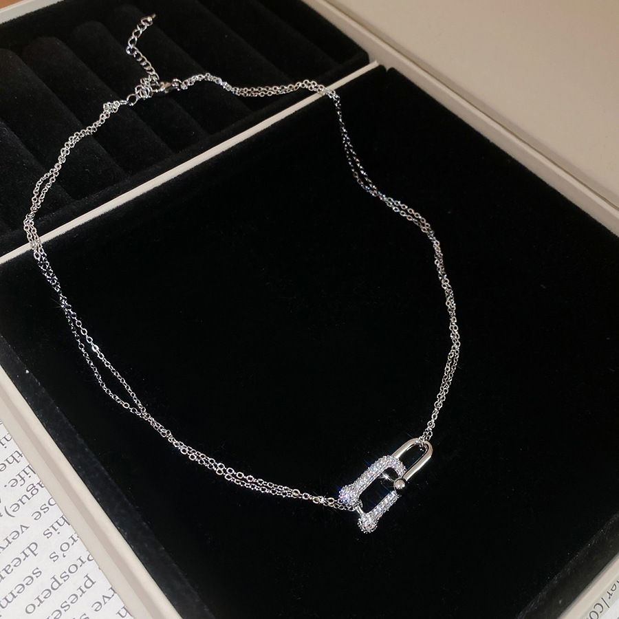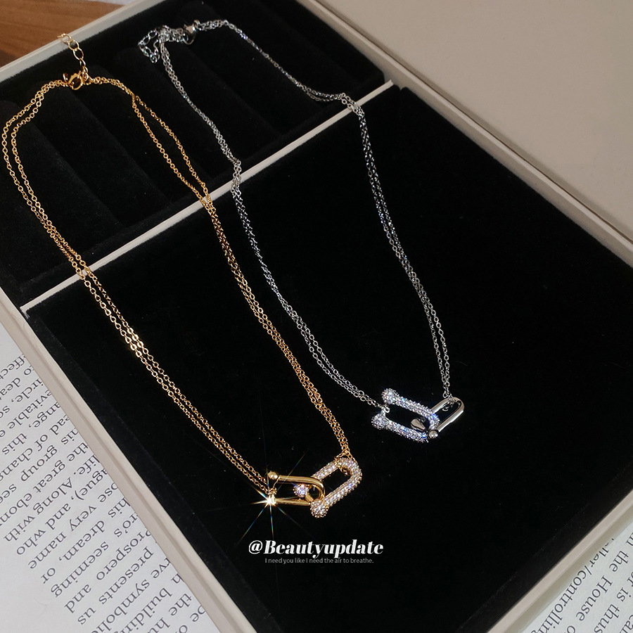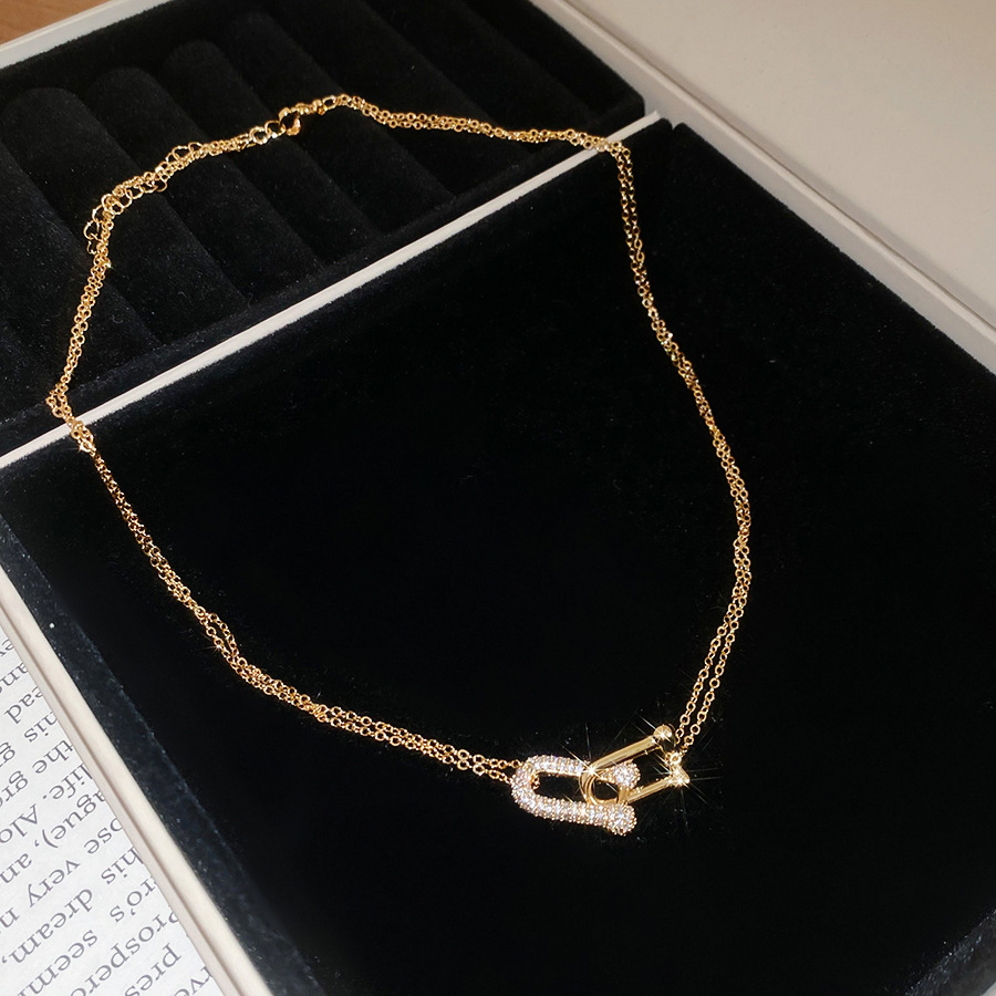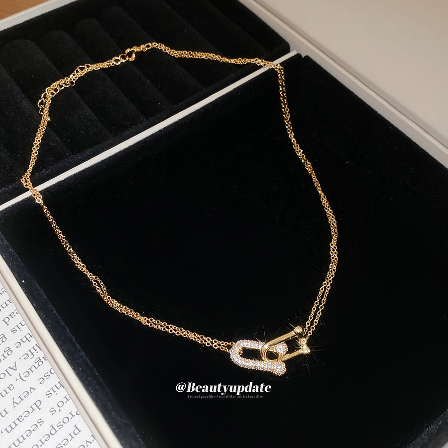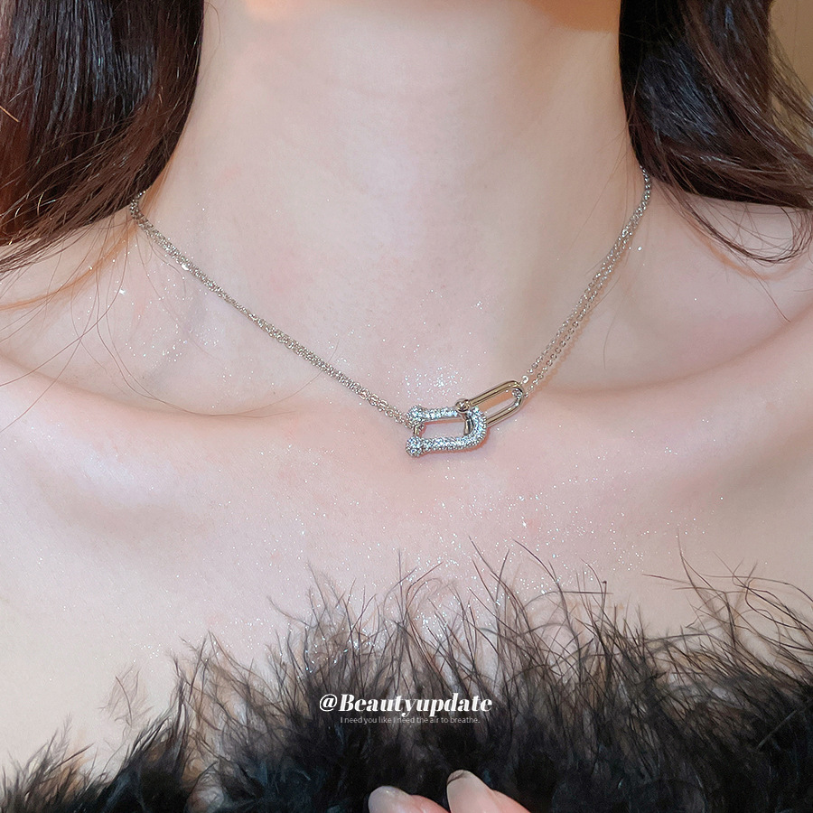 法式简约双层锆石马蹄交叉项链轻奢高级感锁骨链时尚百搭小众项饰 English | 投诉