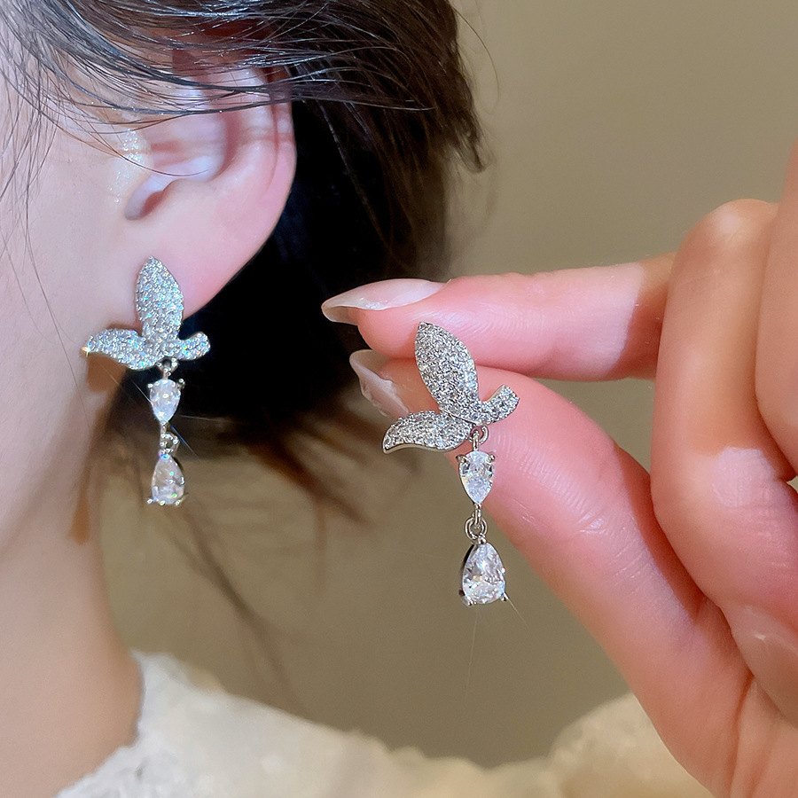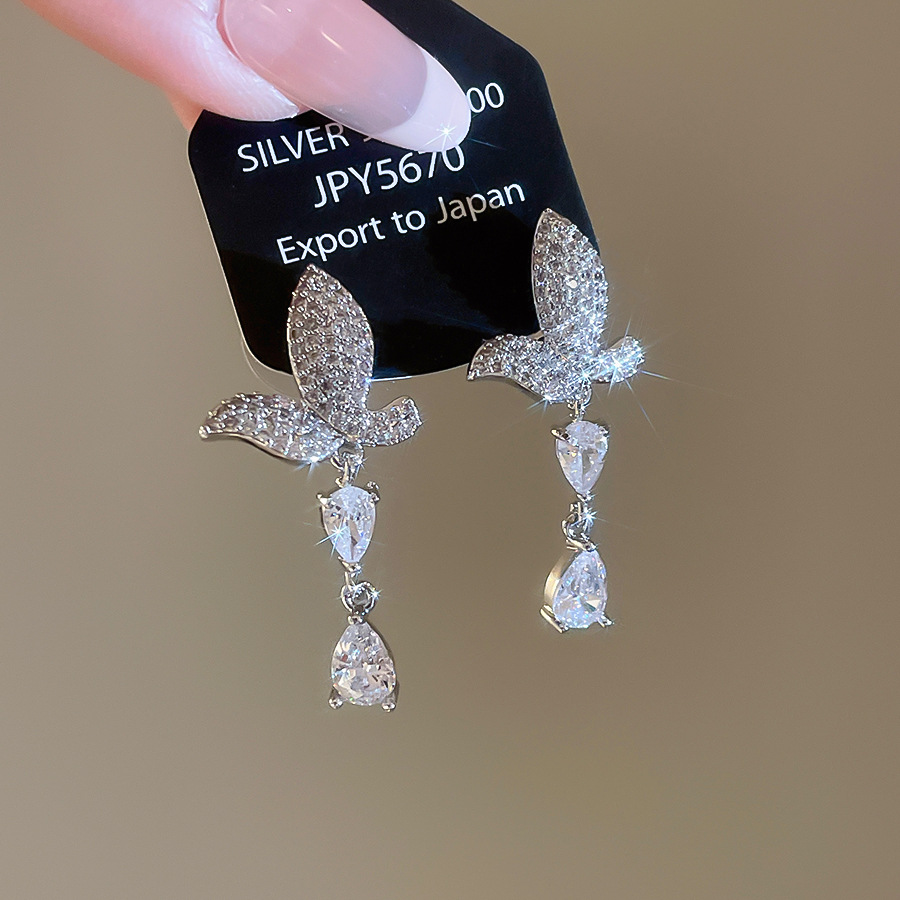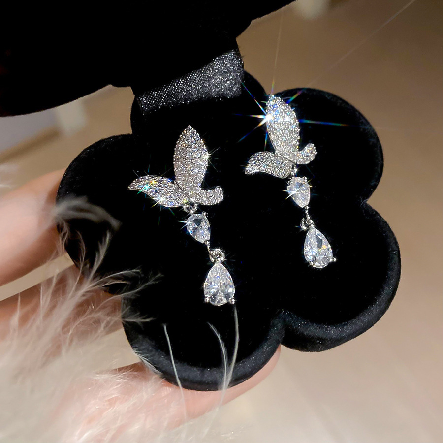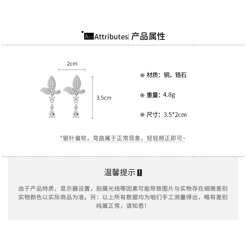 银针法式简约锆石蝴蝶水滴流苏耳环轻奢高级感耳钉时尚精致耳饰女 English | 投诉