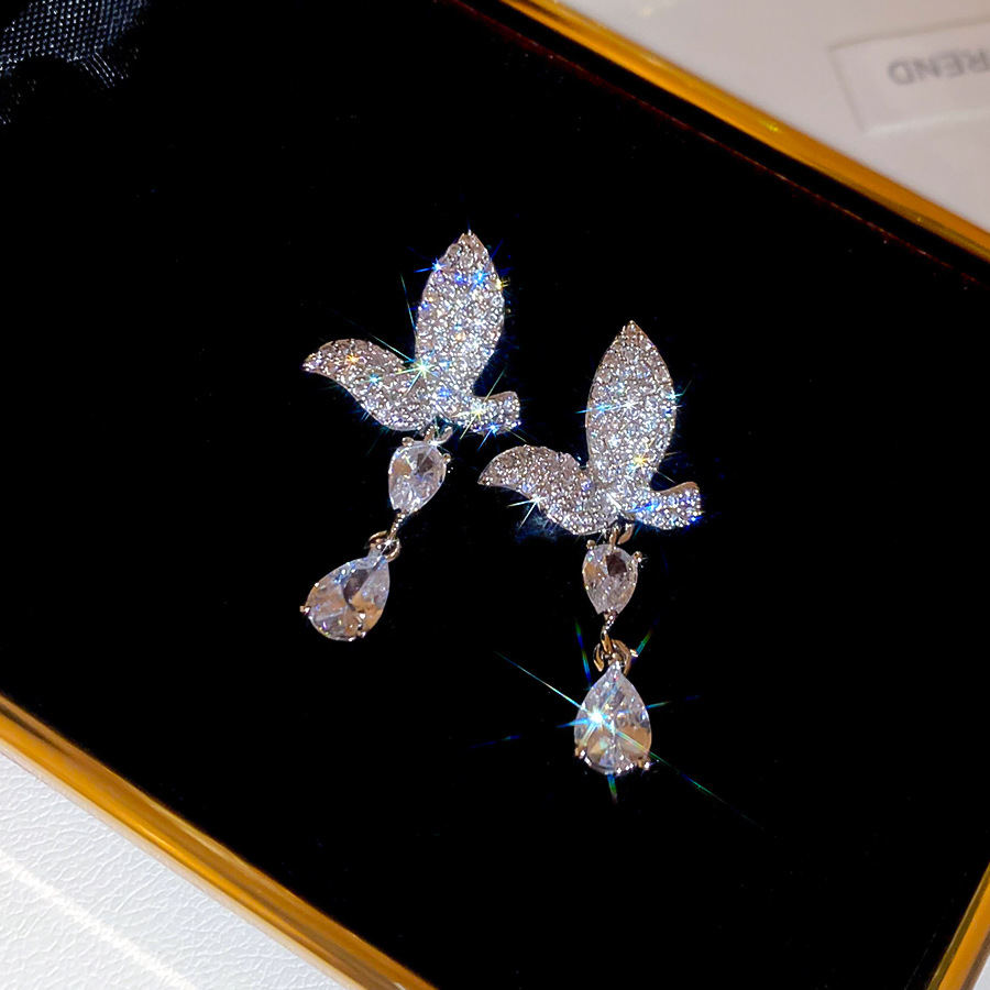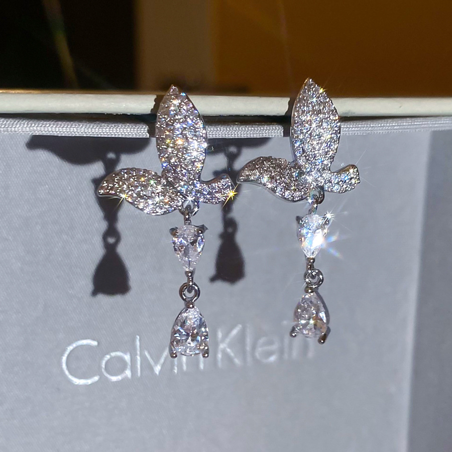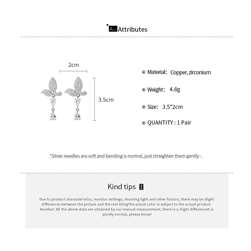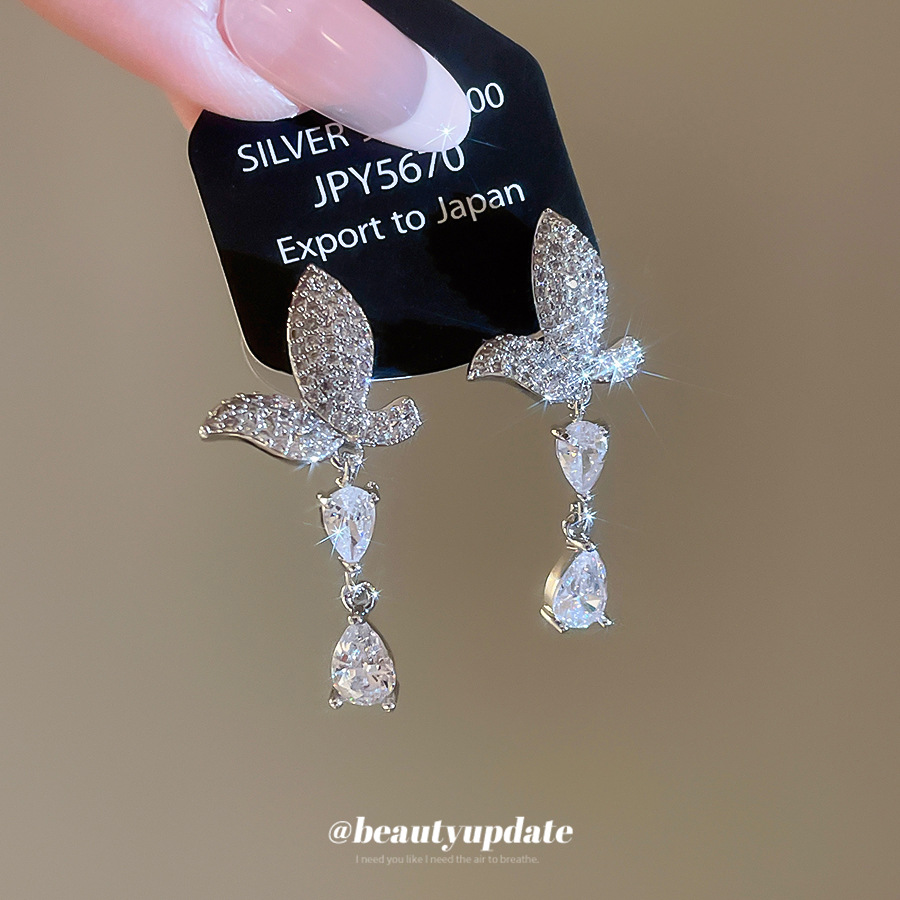 银针法式简约锆石蝴蝶水滴流苏耳环轻奢高级感耳钉时尚精致耳饰女 English | 投诉