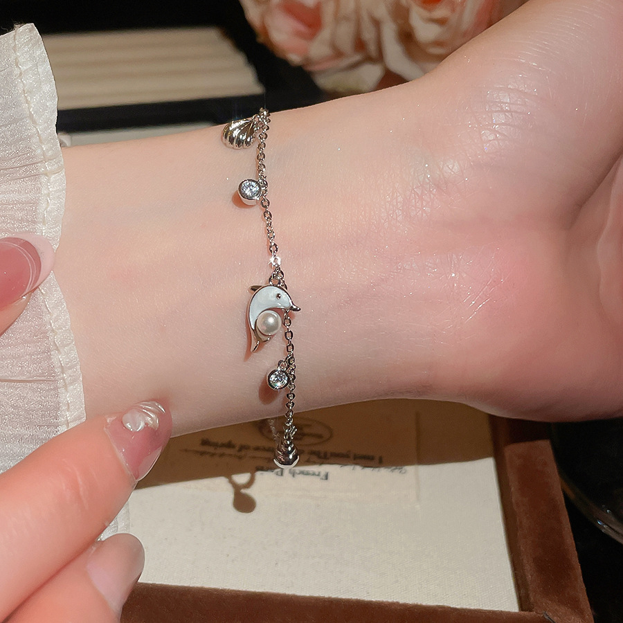 韩系浪漫ins风锆石滴油海豚手链轻奢高级感手环时尚简约手饰批发 English | 投诉