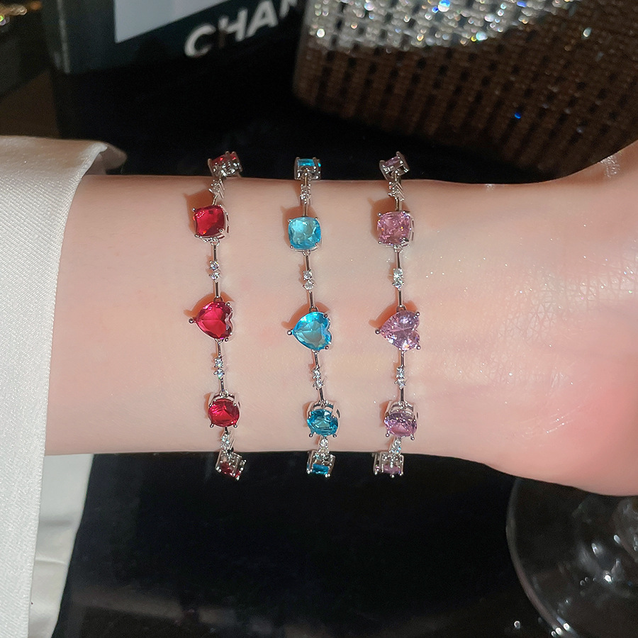 材质: 铜 品牌: 宝钰饰品厂 处理工艺: 镶锆石 风格: ins风 适用人群: 女式 样式: 女式 造型: 心形,几何型 适用送礼场合: 旅游纪念 货号: HB5280 产地: 义乌 颜色: 手链-红色,手链-粉色,手链-蓝色 有可授权的自有品牌: 是 是否跨境出口专供货源: 是 流行元素: 爱心/心形 上市年份/季节: 2026年春季 风格分类: 个性风潮 流行元素分类: 形状/图案 重量: 0.5 kg/条