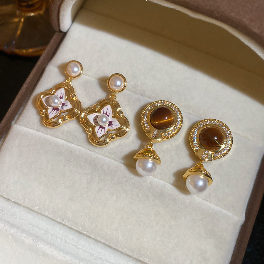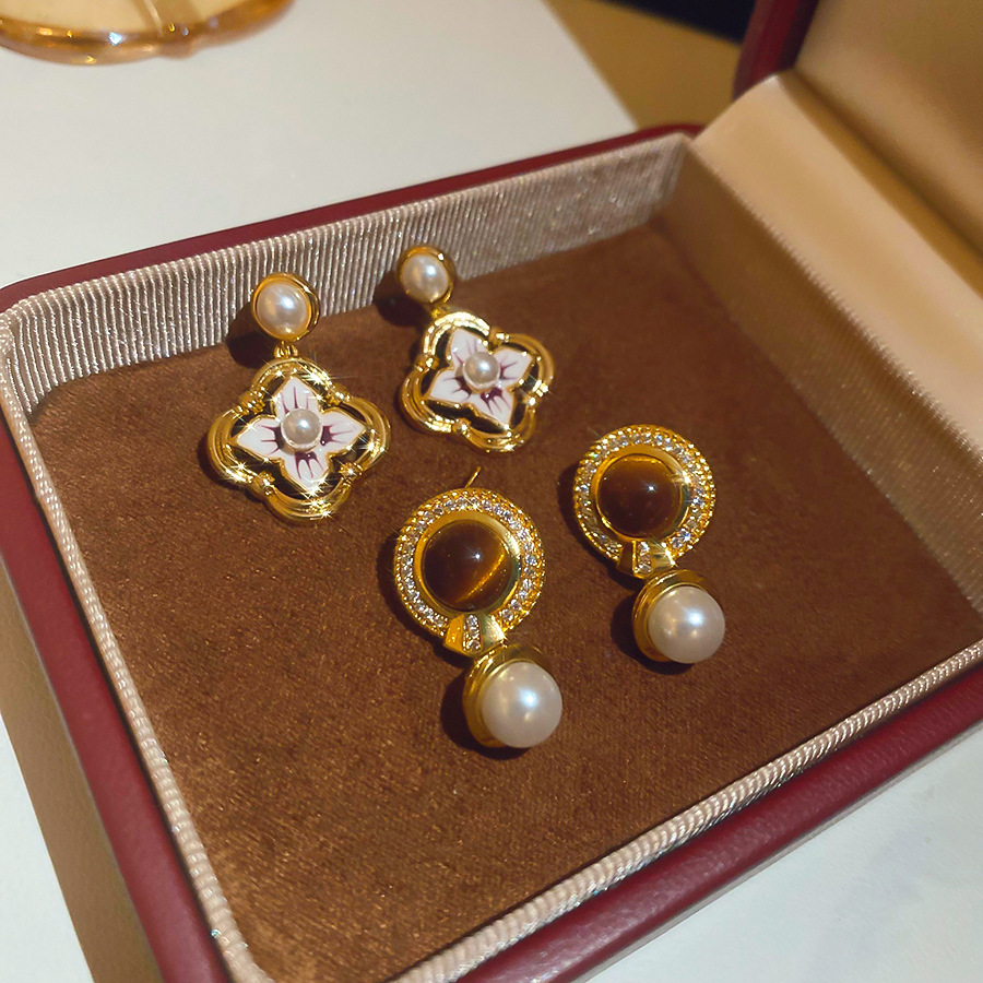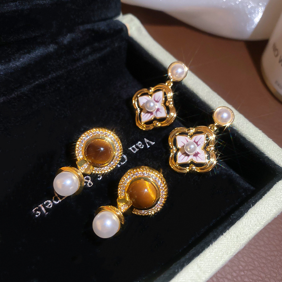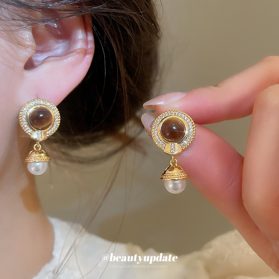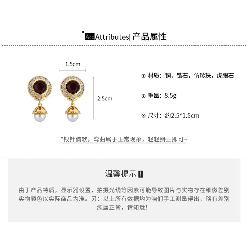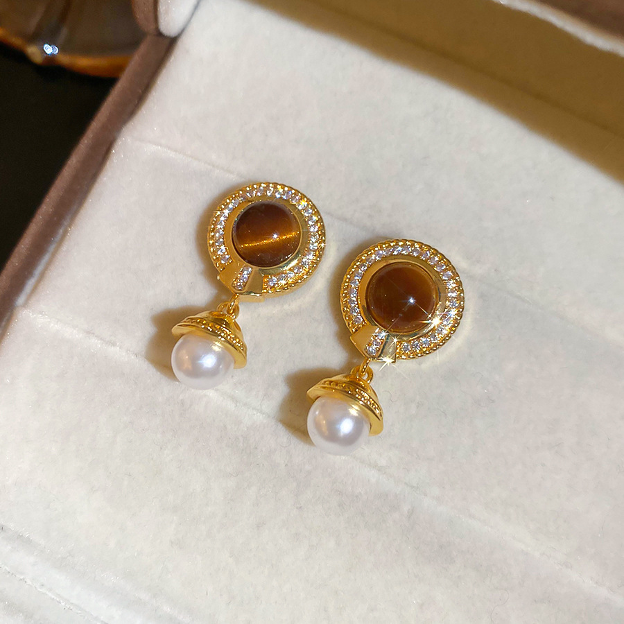 14k真金电镀中古风锆石虎眼石耳环轻奢高级感耳钉时尚个性耳饰女 English | 投诉