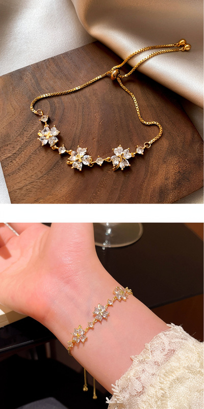 18k真金电镀简约锆石花朵手链轻奢高级感手环时尚精致奢华手饰女 English | 投诉